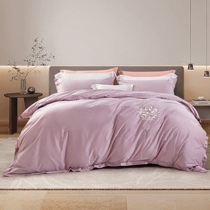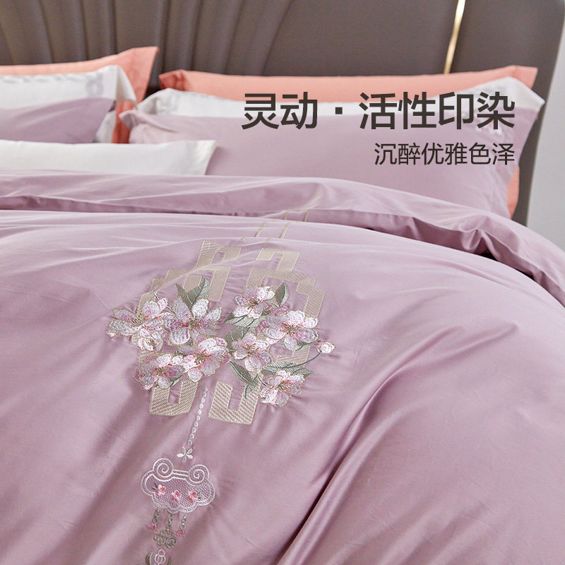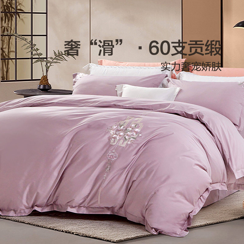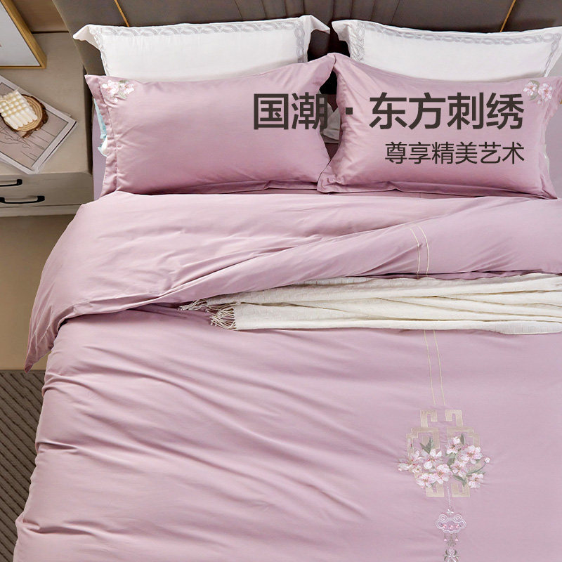 富安娜60支长绒棉四件套轻奢床品套件酒店民宿全棉纯棉床单被套