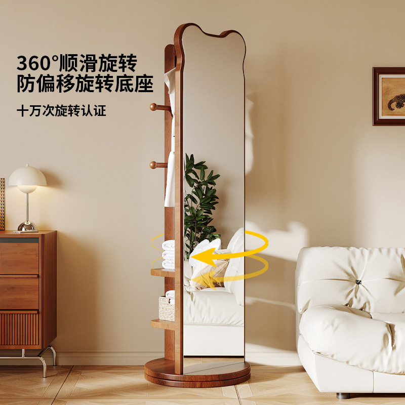 小熊旋转全身镜落地镜家用卧室穿衣镜可移动试衣镜挂衣架一体镜子