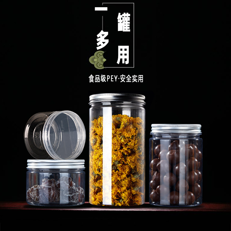 饼干桶大号铝盖pet食品级透明塑料瓶子带盖蜂蜜密封罐杂粮收纳盒