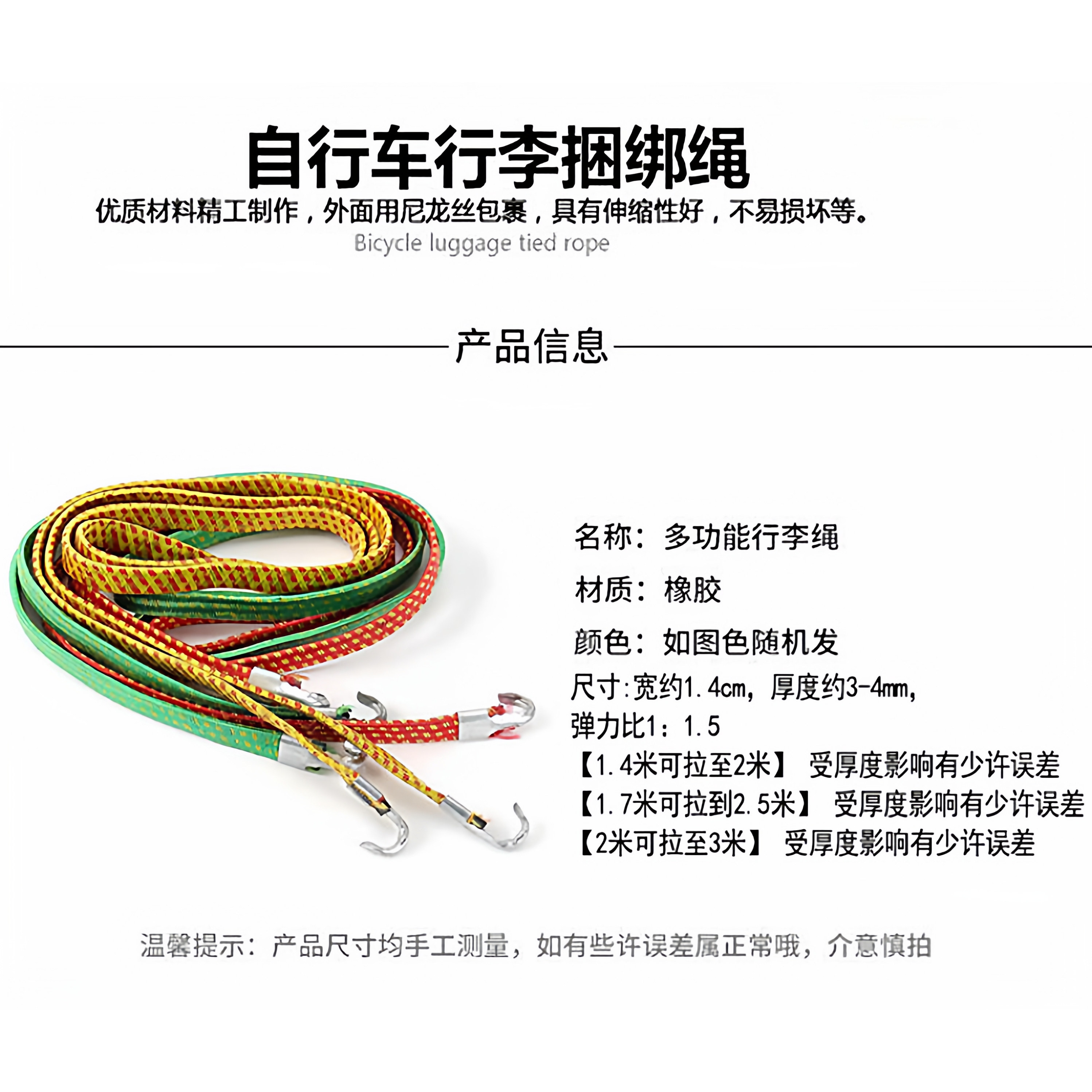 推荐理由:摩托车捆绑绳后备箱绑带挂勾弹力松紧绳绑货行李橡胶绳子加粗捆扎