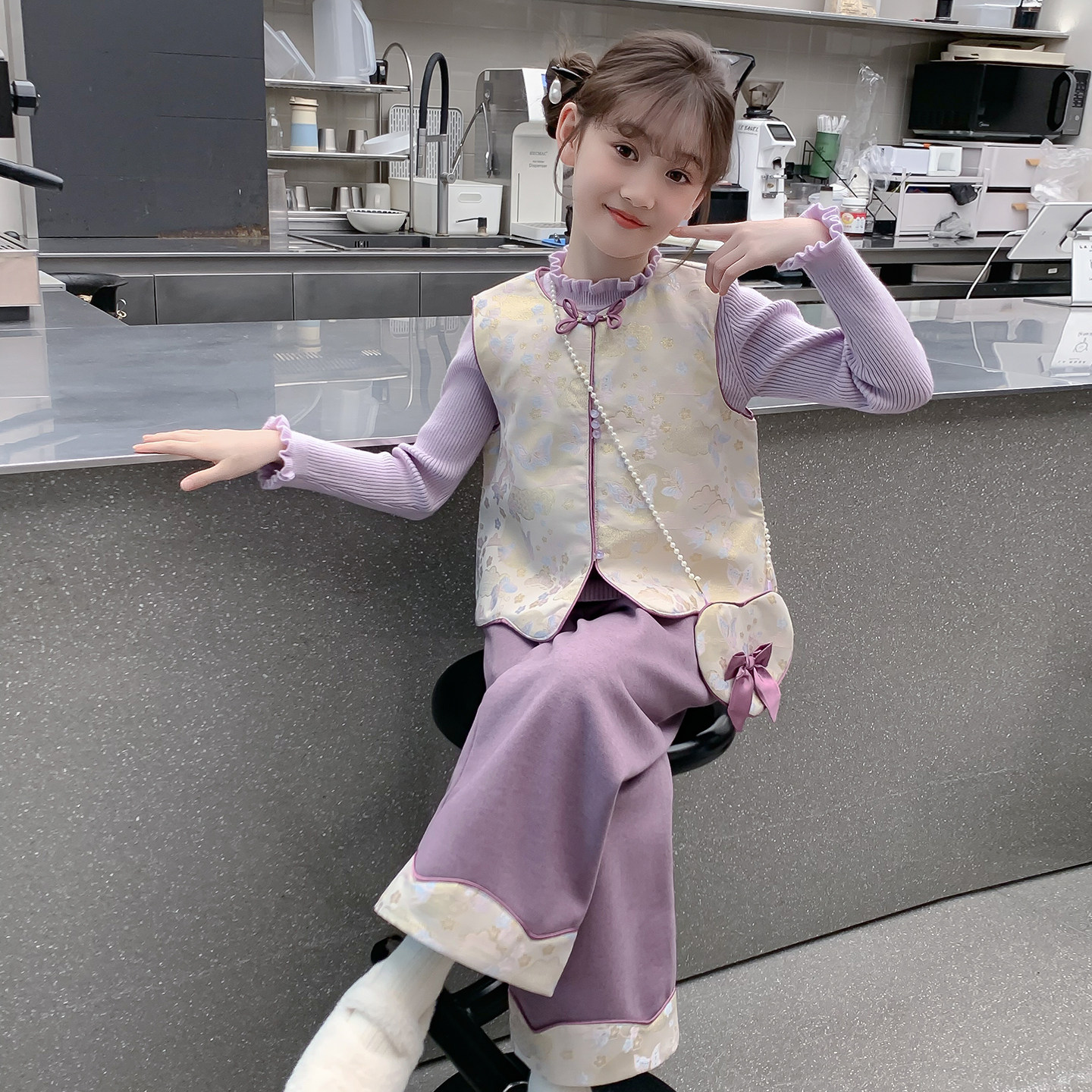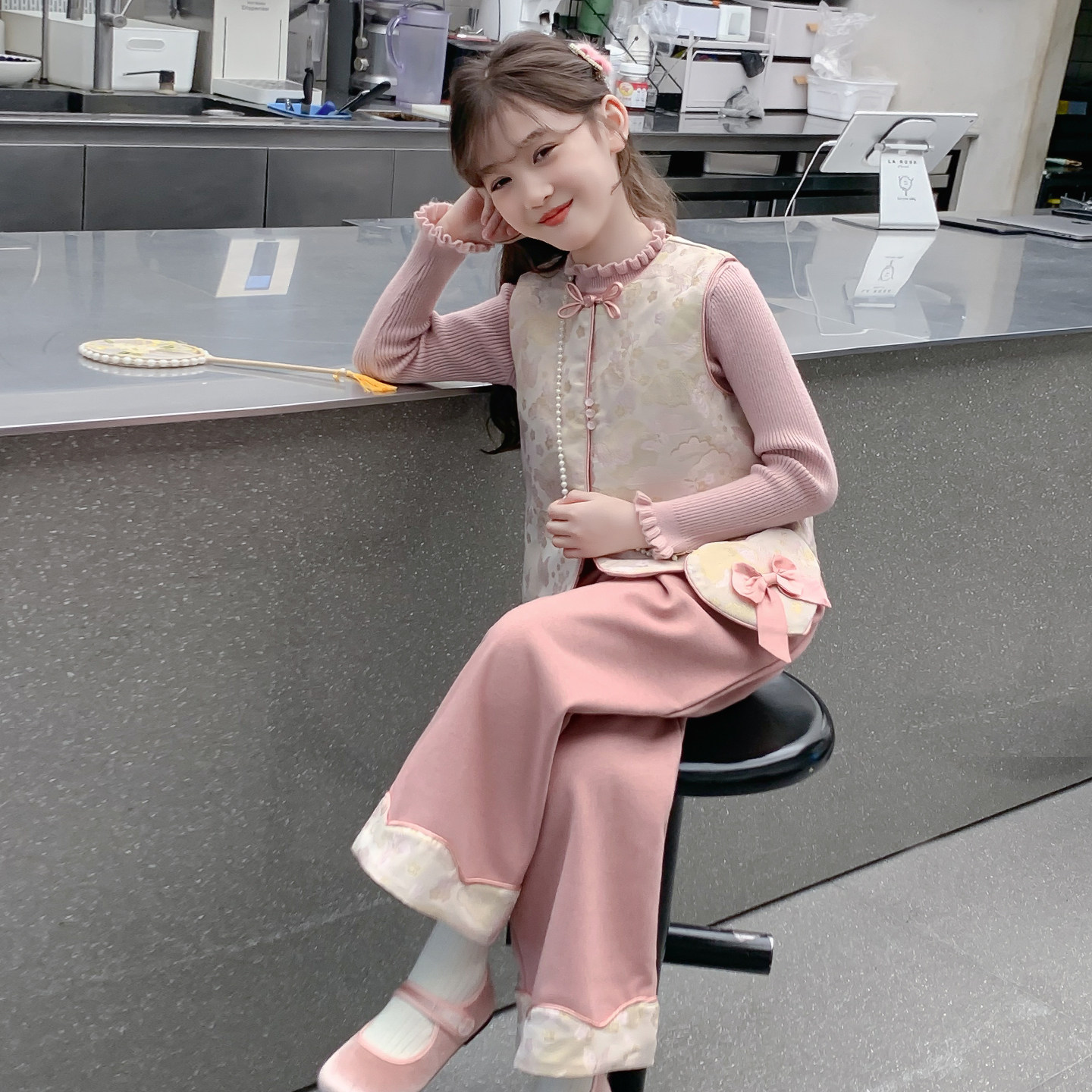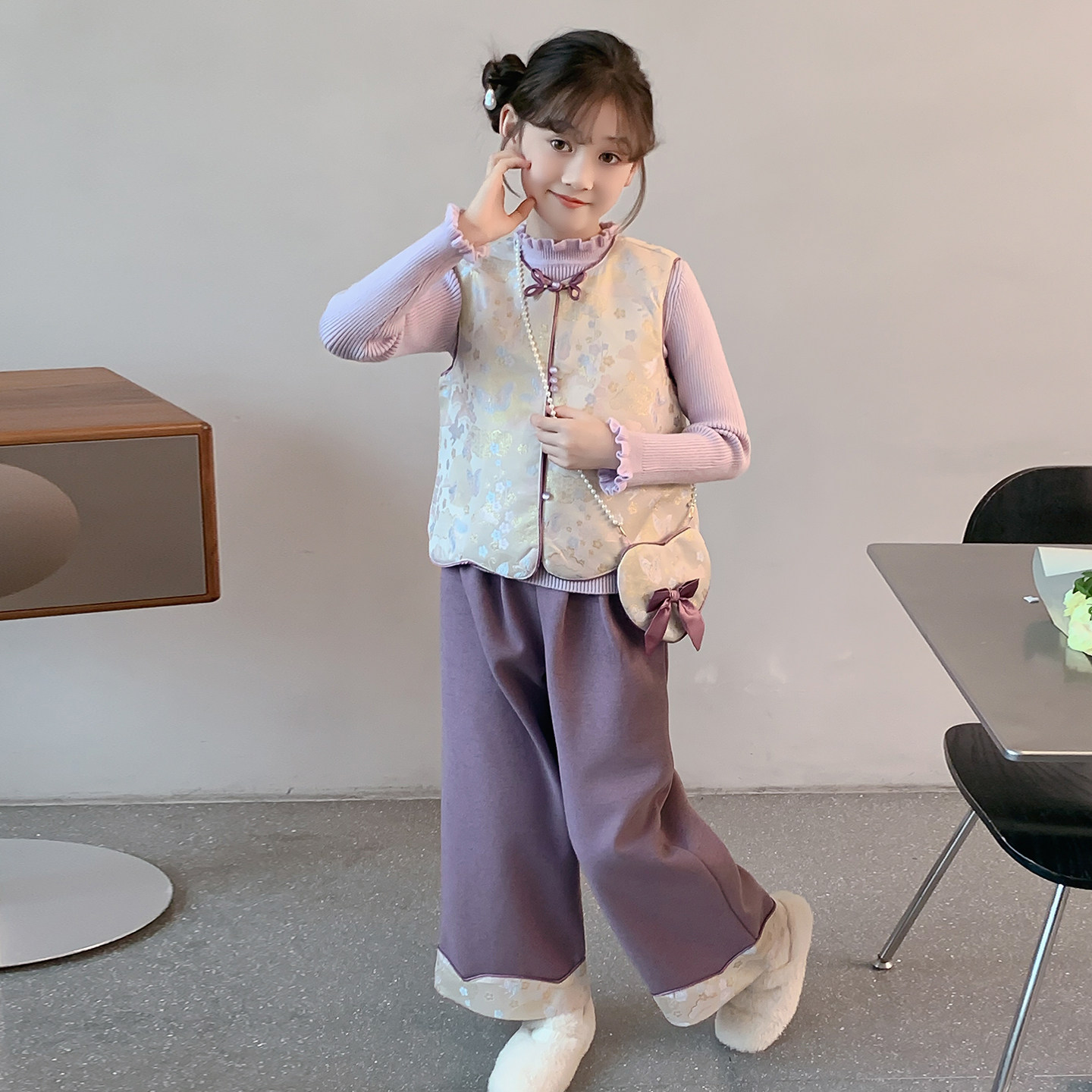 推荐理由:女童套装2025新款冬装儿童洋气汉服国风新中式加绒加厚女孩三件套