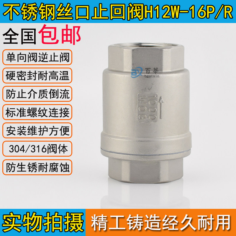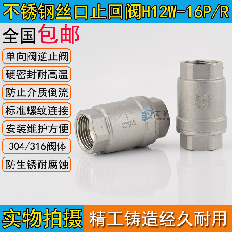H12W-16P 304不锈钢立式止回阀单向阀逆止阀1寸2寸4分DN15 20 25