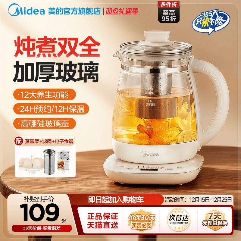 美的全玻璃24小时恒温养生壶