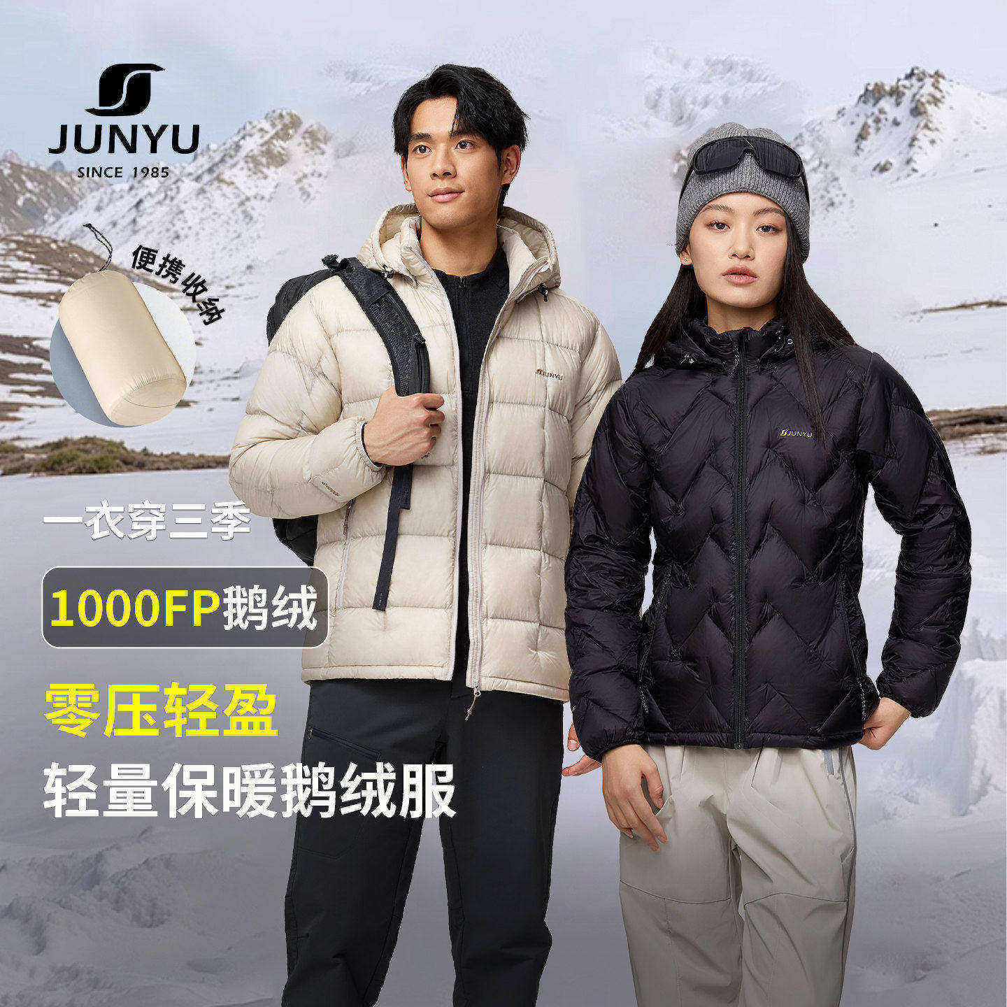 君羽1000蓬鹅绒服男女短款2025新款冬季户外轻薄羽绒服男外套445
