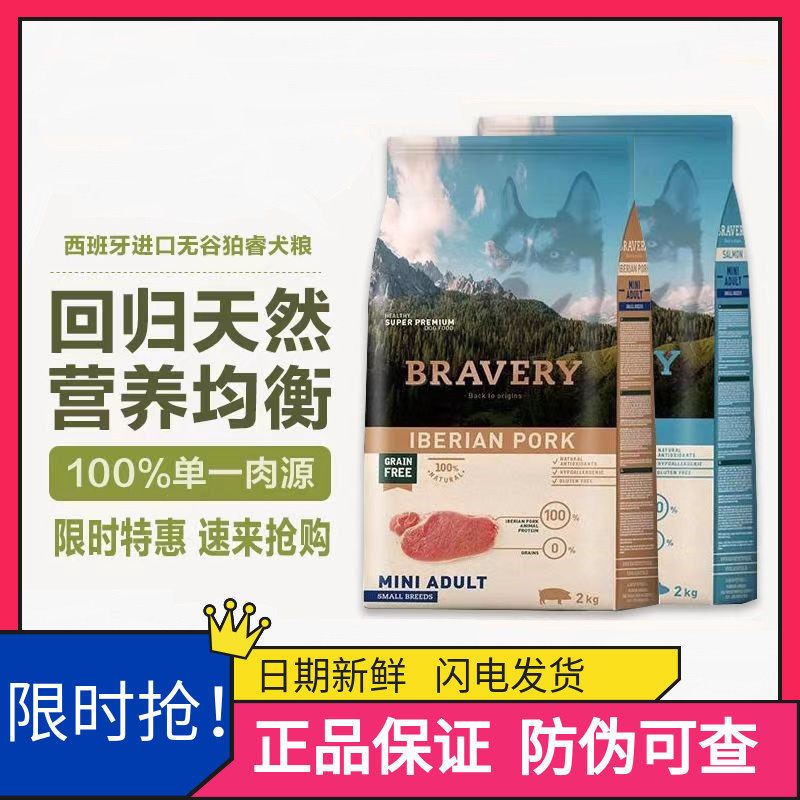西班牙进口BRAVERY狛睿犬粮黑猪肉三文鱼小型犬中大型犬7kg狗主粮