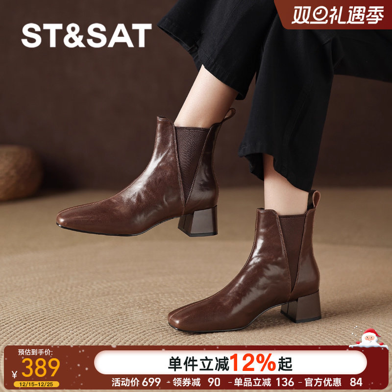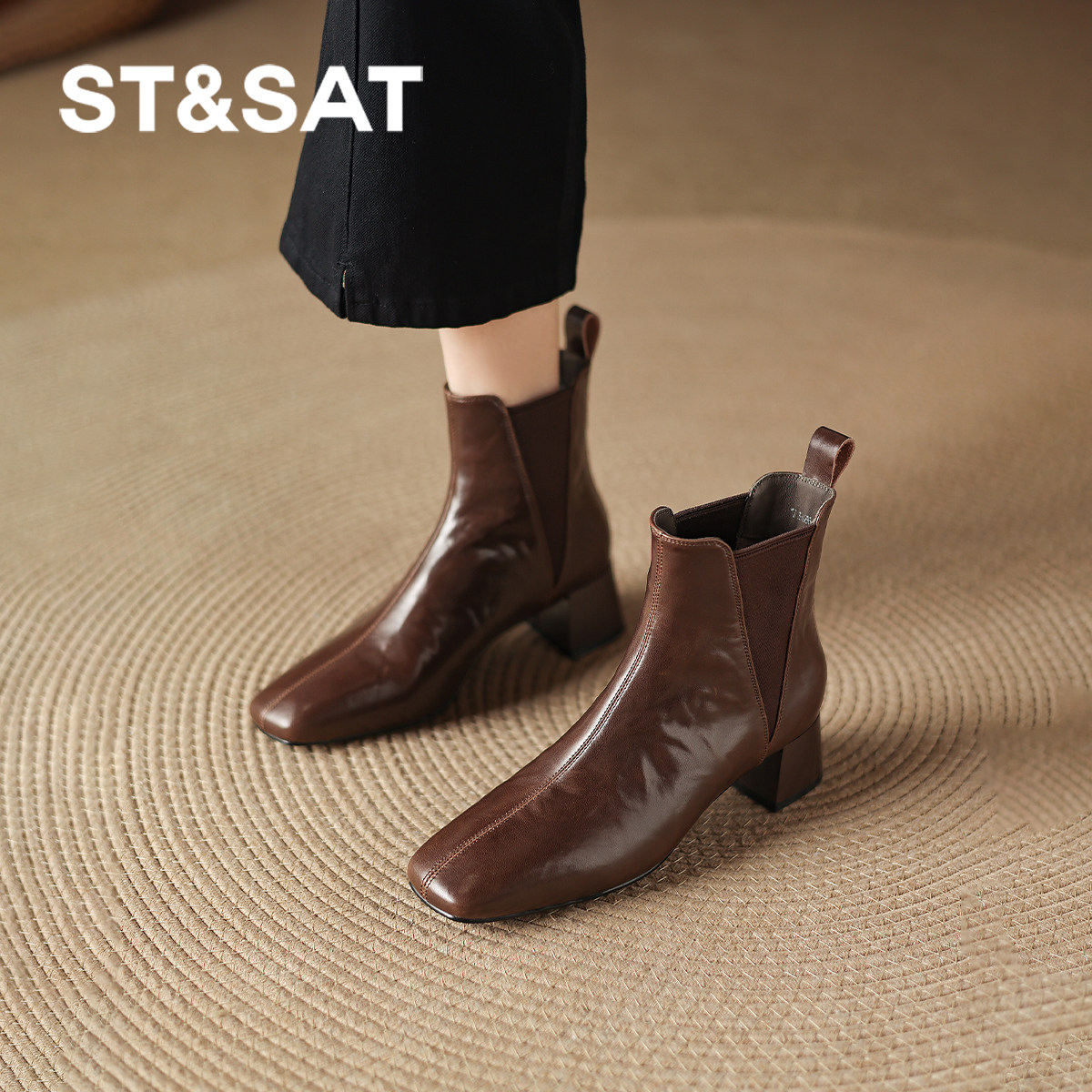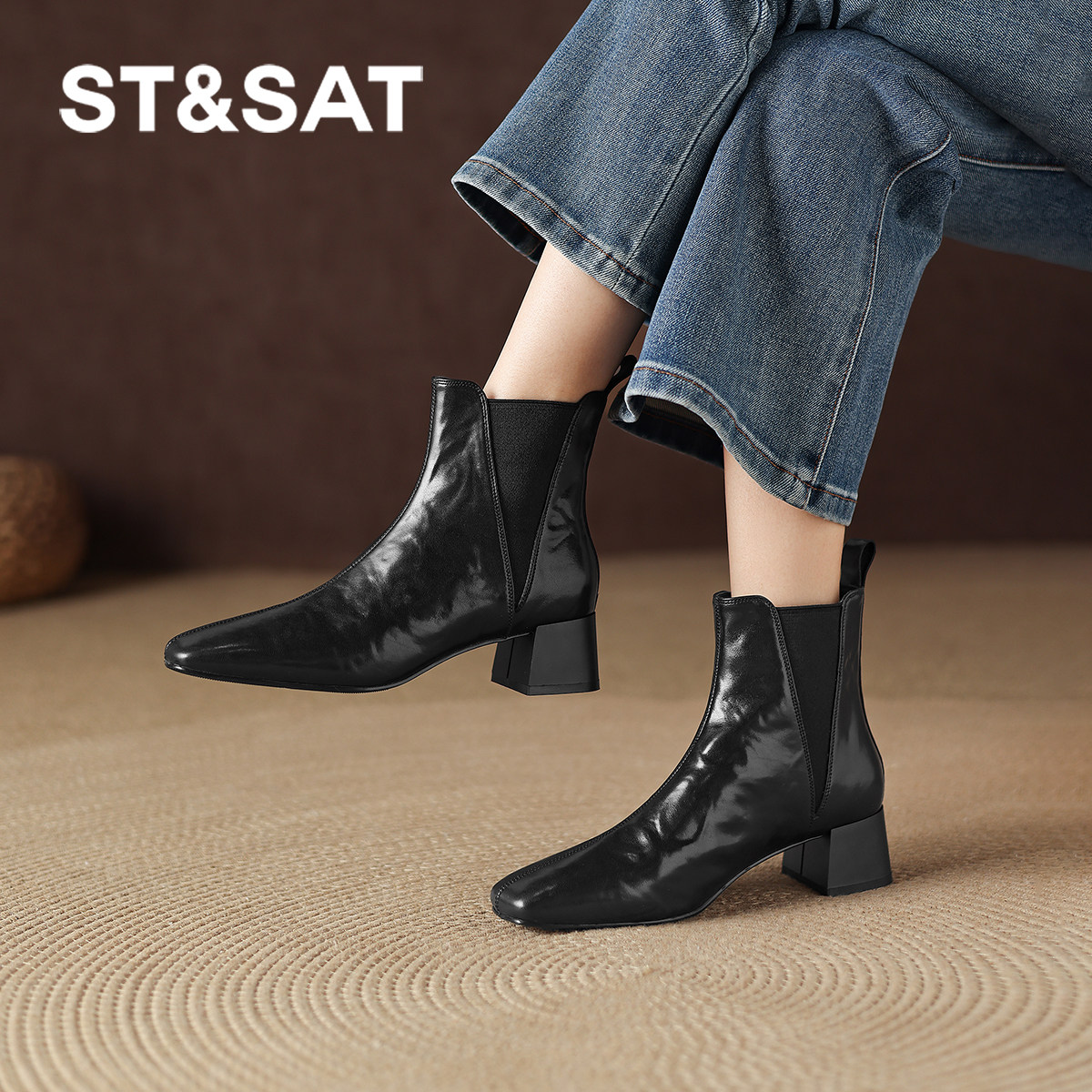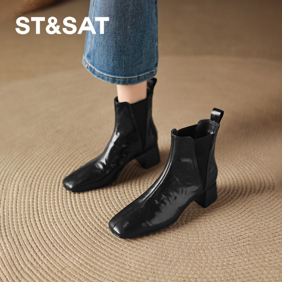 星期六方头切尔西小短靴2025新款女款早秋冬季加绒马丁皮靴女靴子