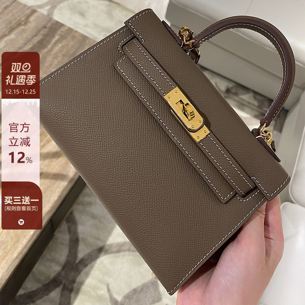 哈妞家二代凯莉包大象灰高级感真皮女士包包mini手提质感斜挎包女