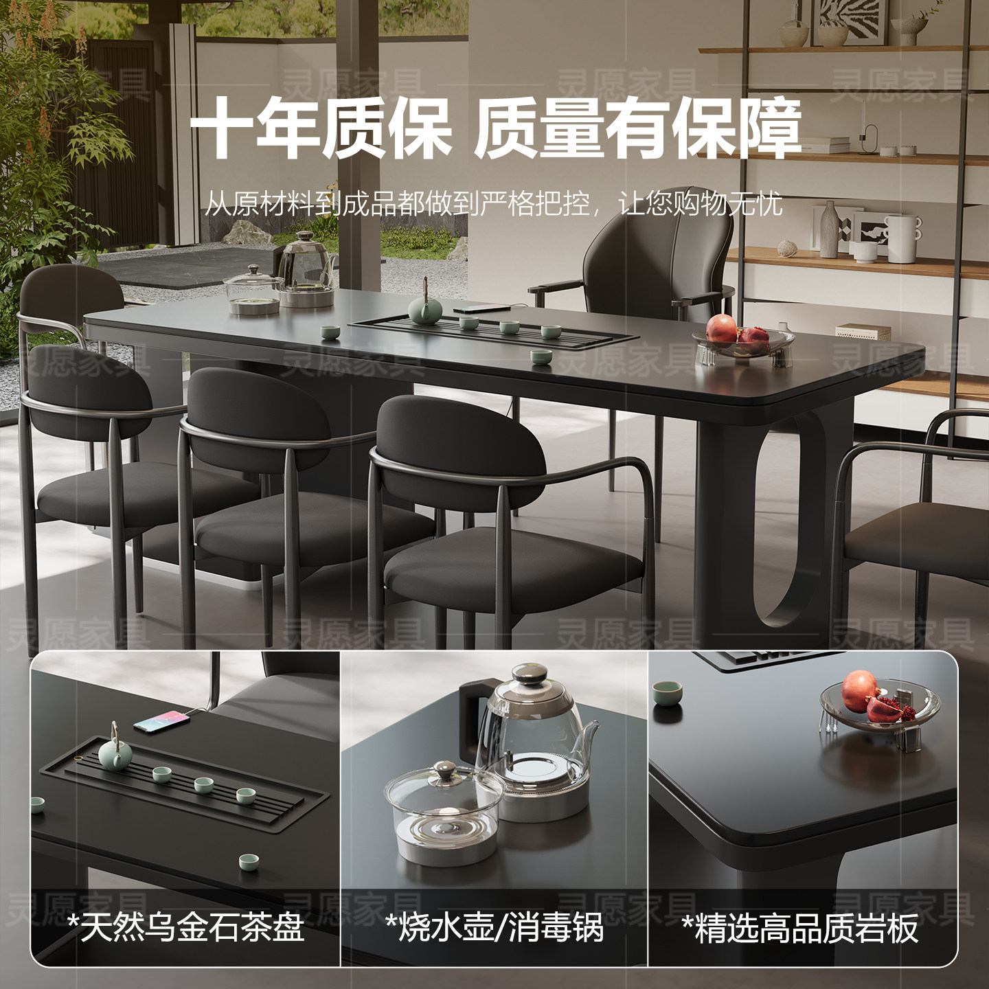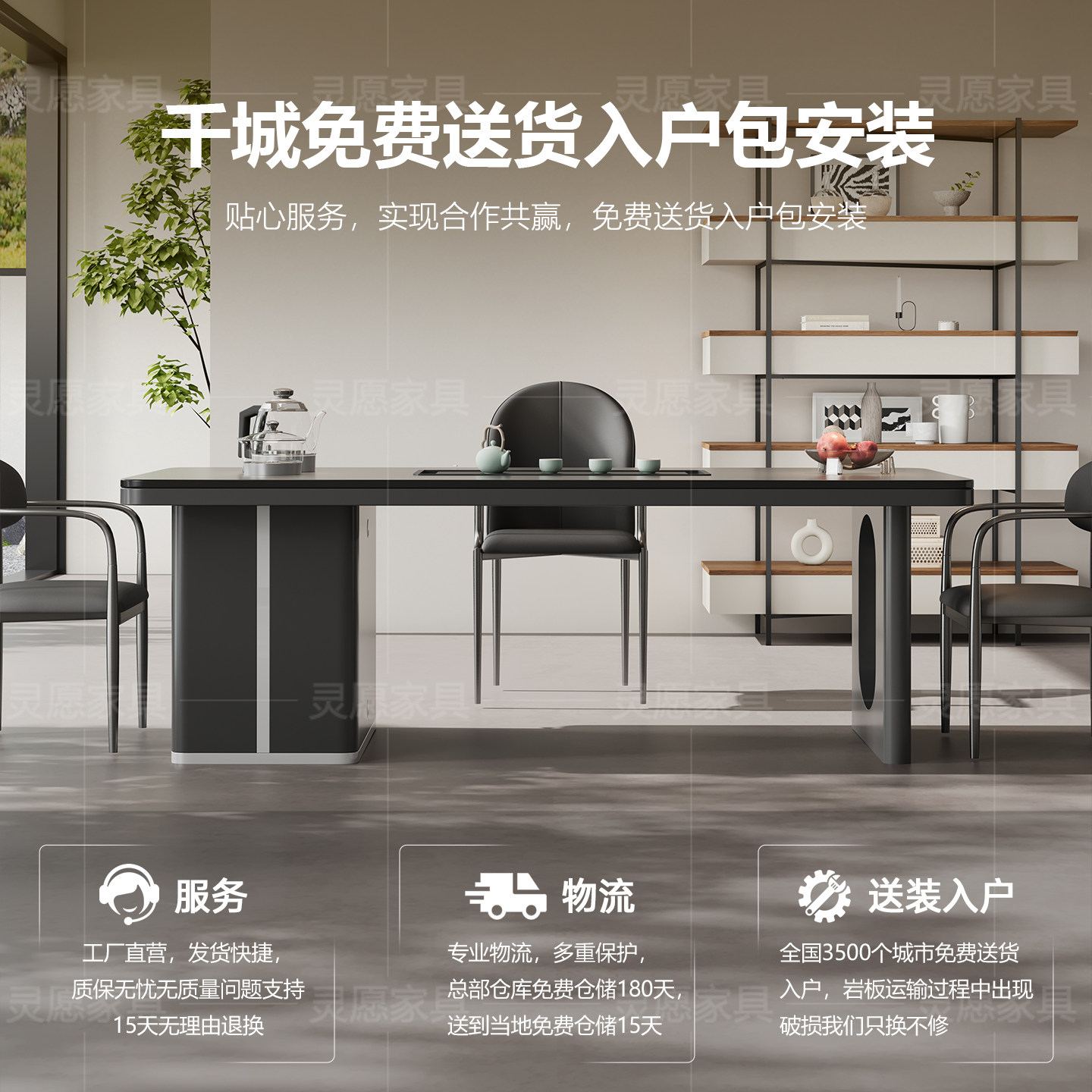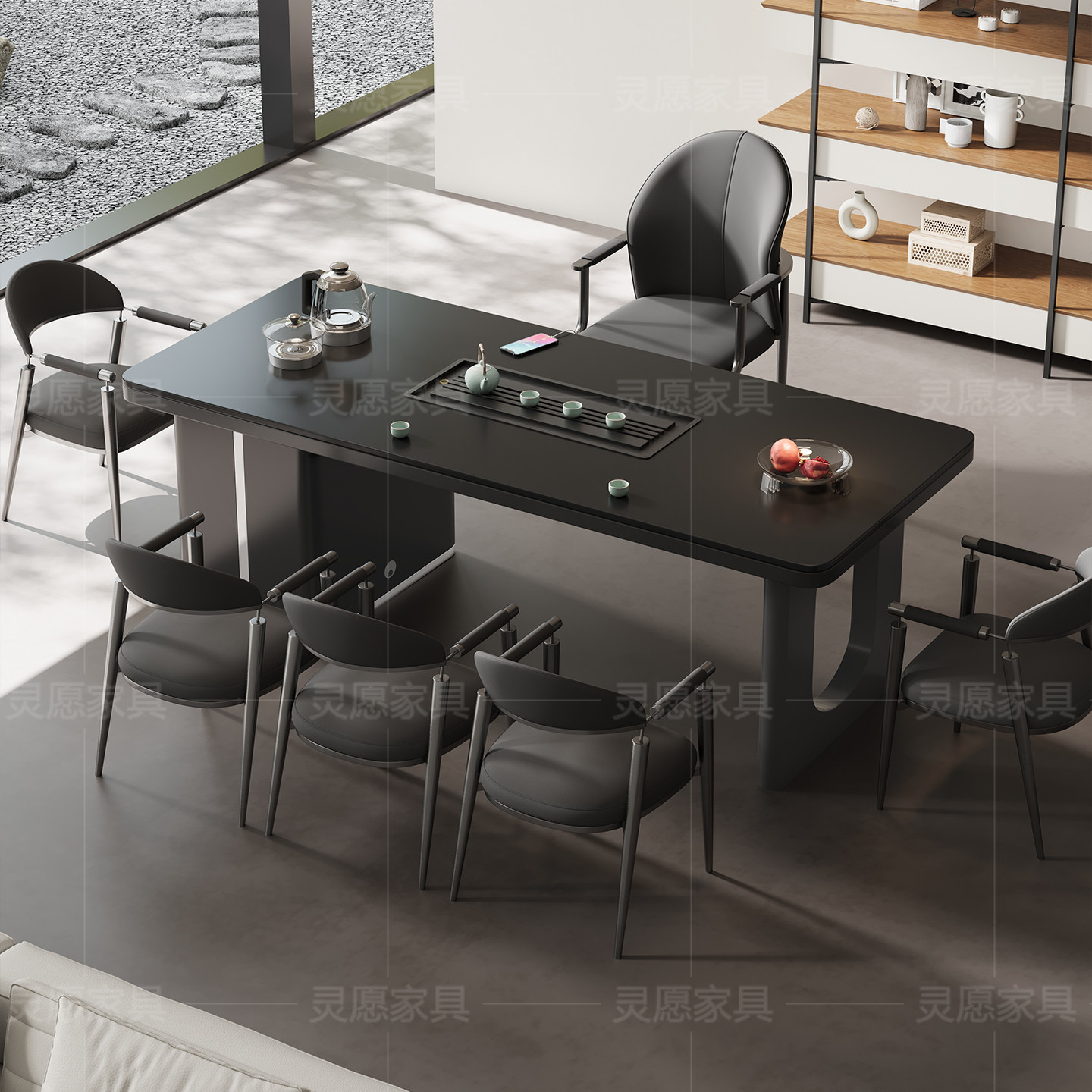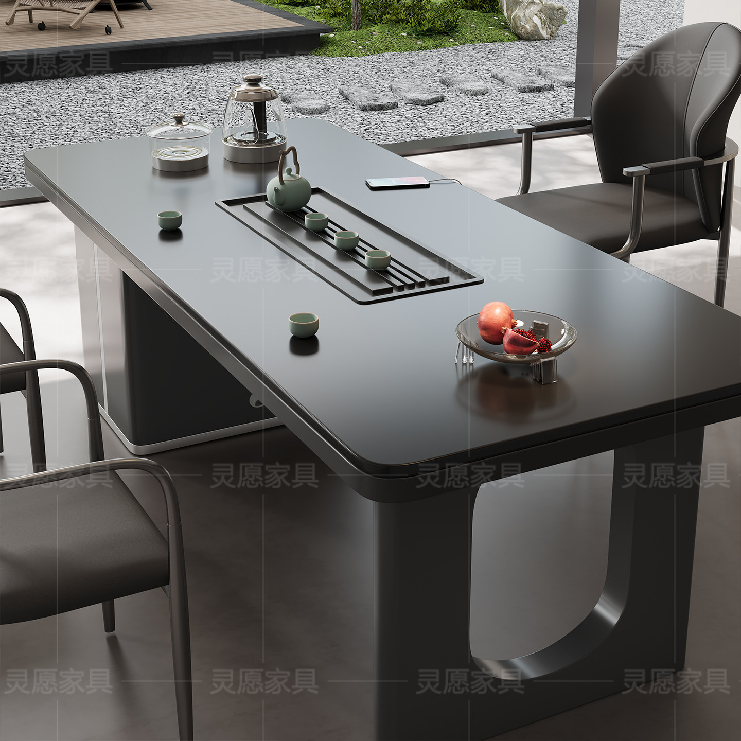 轻奢现代高级感别墅老板办公一体接待泡茶台高端岩板茶桌椅组合