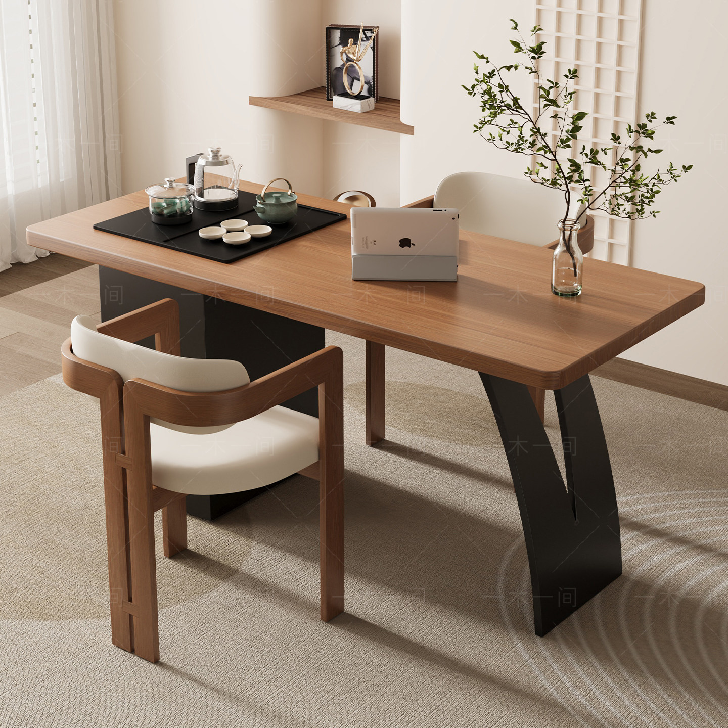 推荐理由:实木阳台茶桌办公桌一体简约现代小户型客厅泡茶台茶盘电茶炉一体