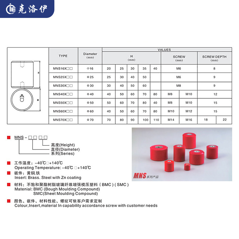 克洛伊MNS绝缘子低压配电柜/30/40/50/60/高强度支柱绝缘子圆柱型
