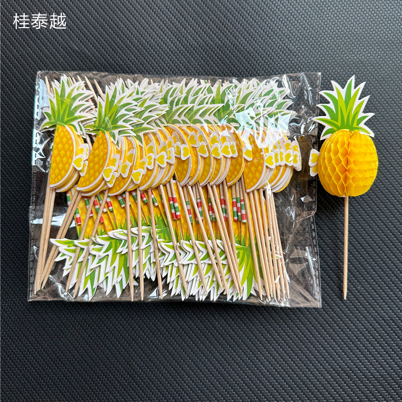 纸质火烈鸟菠萝蜂窝水果竹签蛋糕装饰插件节庆气氛布置鸡尾酒装饰