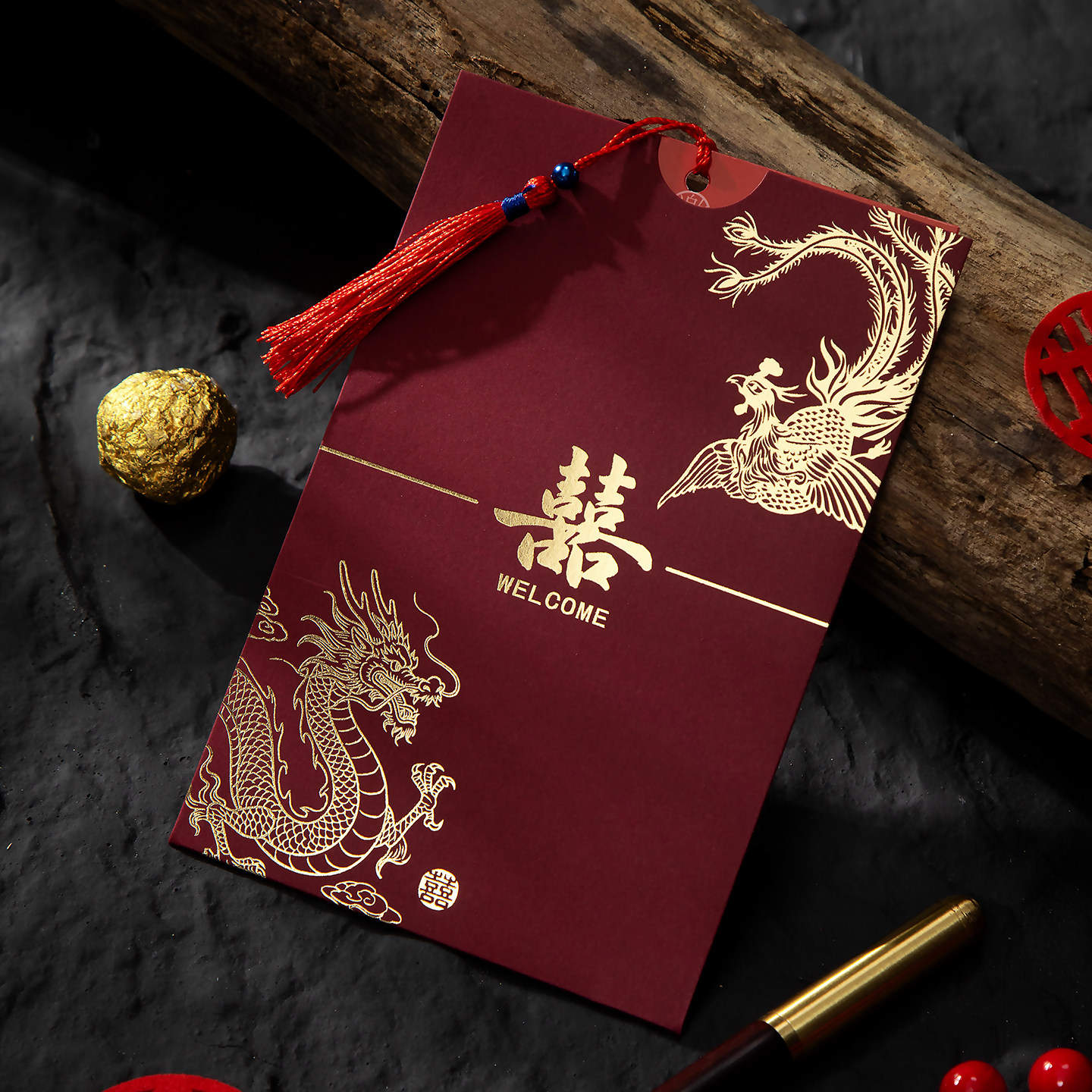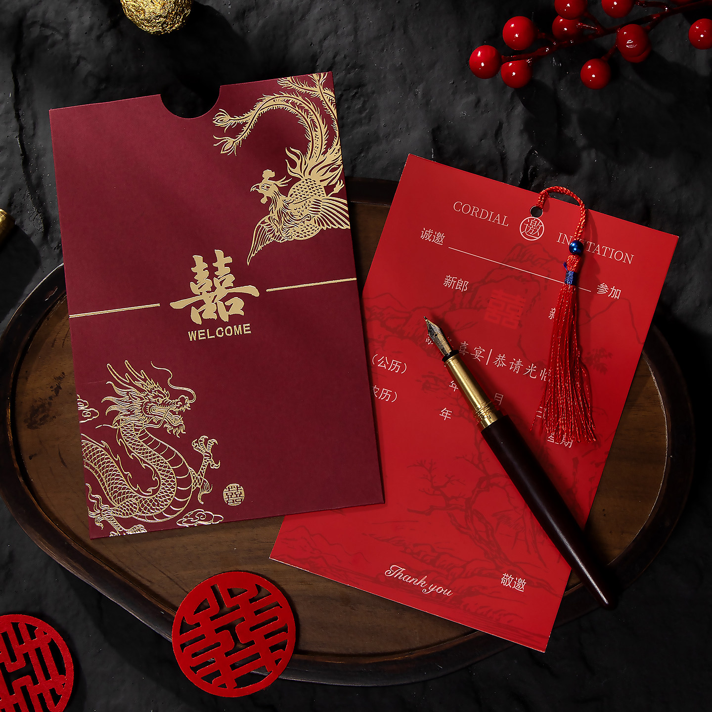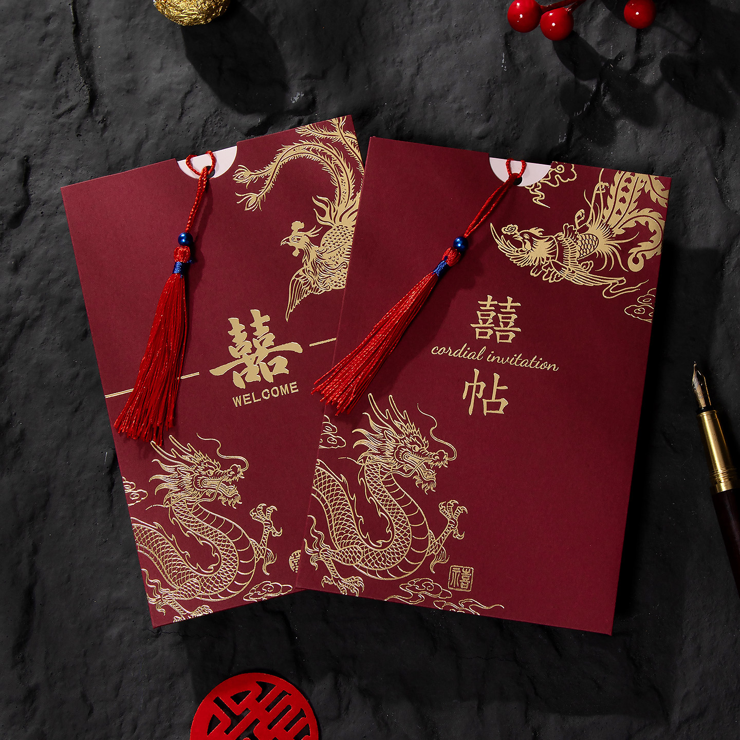 推荐理由:请帖结婚邀请函2025新款酒红流苏烫金喜字中式中国风请柬喜帖婚礼