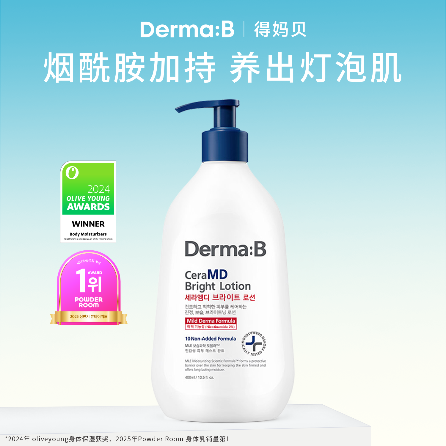 Derma:B得妈贝亮白修护保湿身体乳400ml修护屏障敏肌适用韩国进口