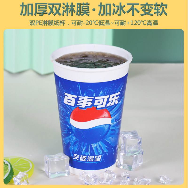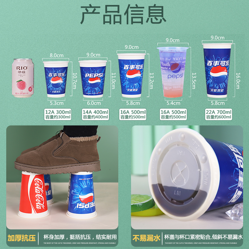 推荐理由:可乐杯子一次性商用纸杯带盖双淋膜百事可乐杯1000只批发 可定制