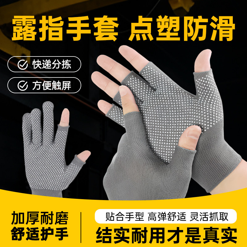 劳保手套断指手套干活开车快递男女防磨搬货分拣司机打包露趾尼龙