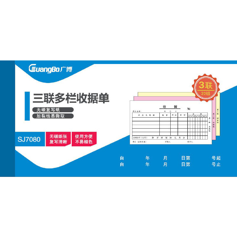 推荐理由:广博单据二联/三联财务办公收据单无碳复印纸加裂线票据收款收据