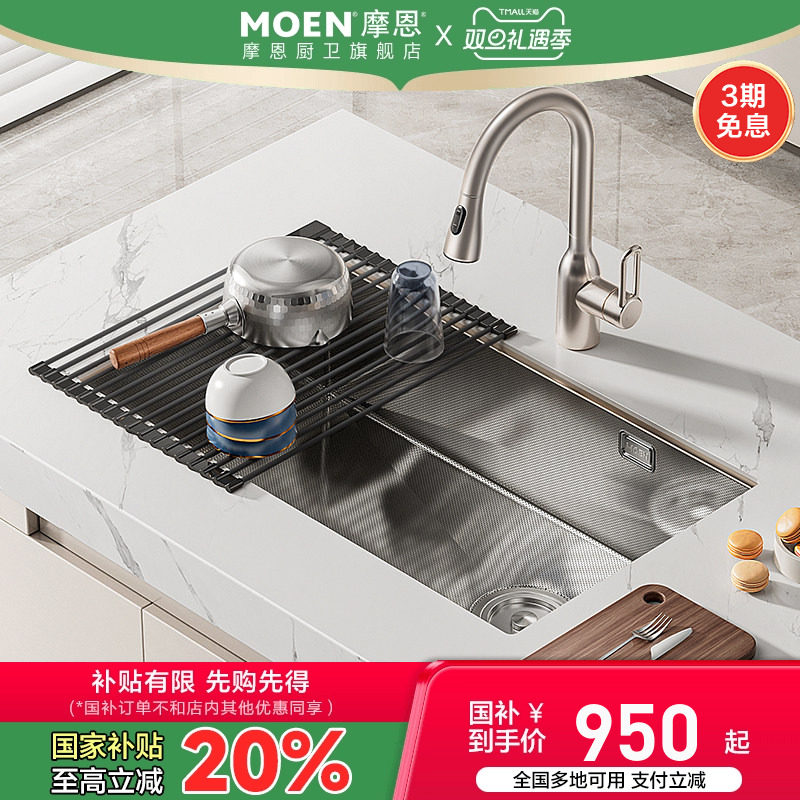 推荐理由:政府补贴摩恩厨房台下盆不锈钢水槽蜂窝压纹手工大单槽洗菜洗碗池