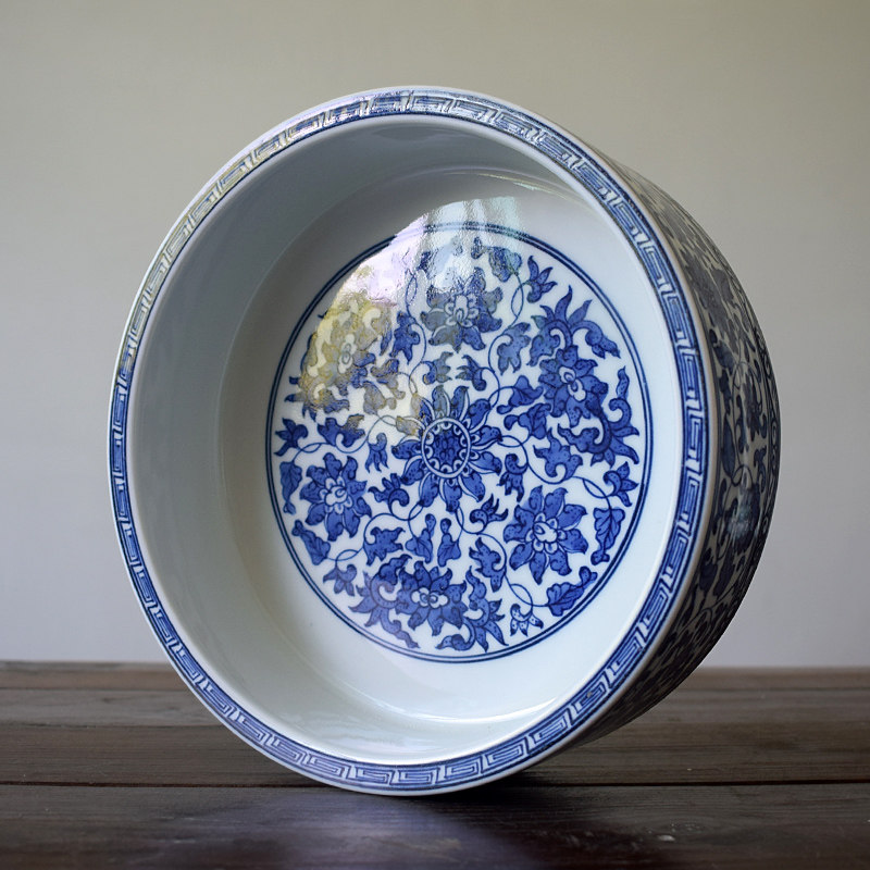 景德镇陶瓷器古典青花缠枝花盆中式软装摆件文房四宝笔洗果盘茶洗