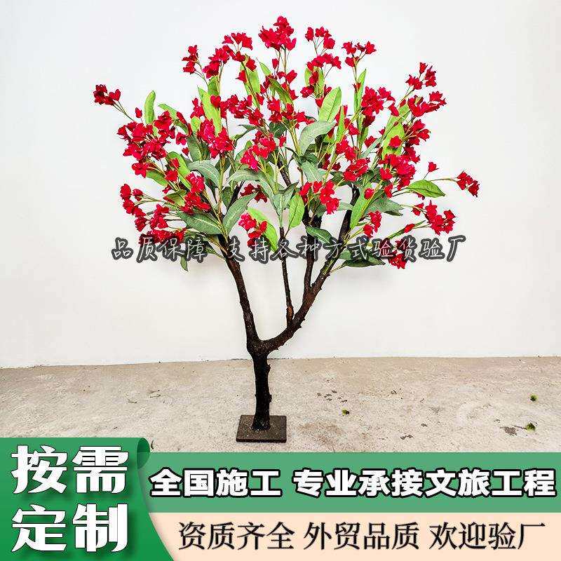 工厂红色鸡蛋花树商场橱窗创意展示绿化摆件人造景观鸡蛋花树