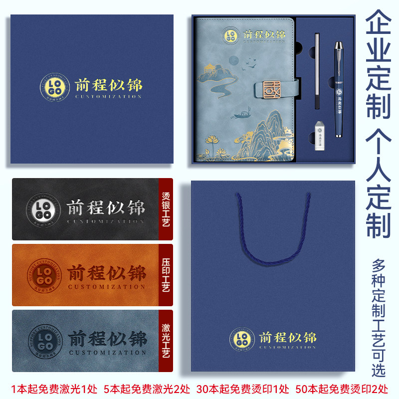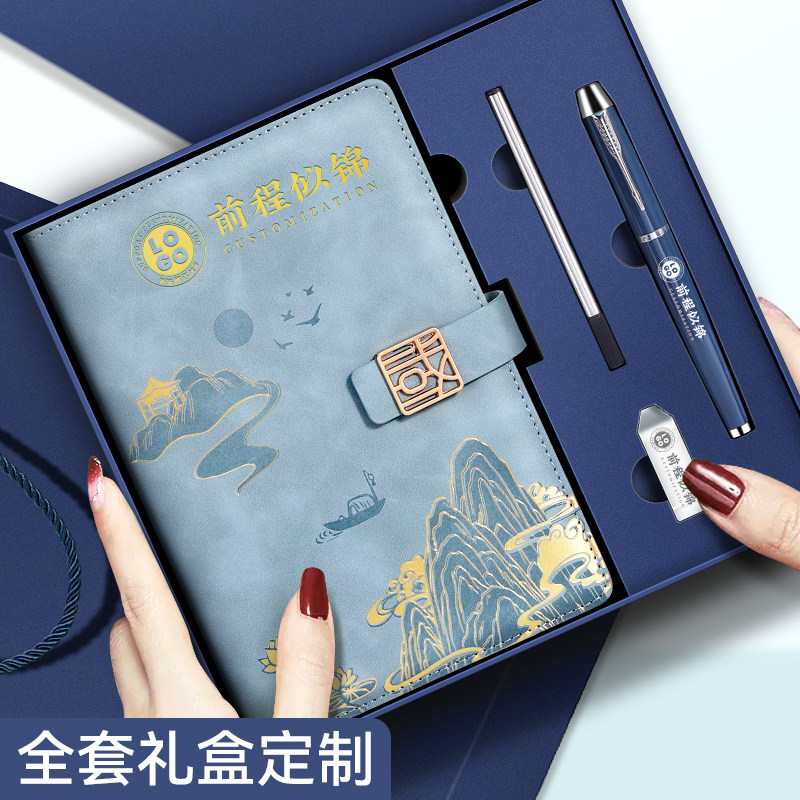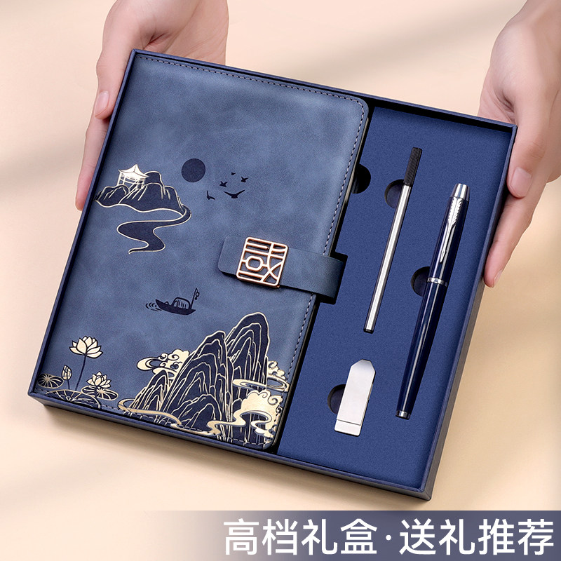国潮笔记本本子礼盒套装加厚复古中国风记事本高档商务办公会议记录本公司礼品纪念品伴手礼礼品定制可印刻字