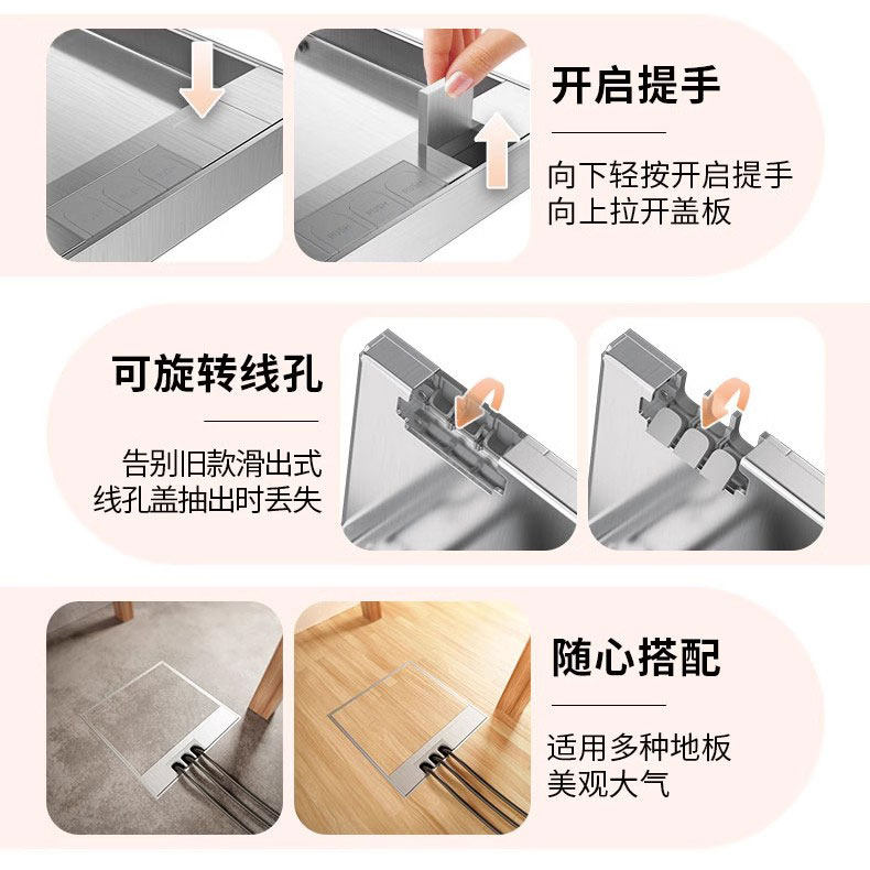 MSHML不锈钢银色超薄地插隐形嵌入式隐藏纯平净水器USB地面插座