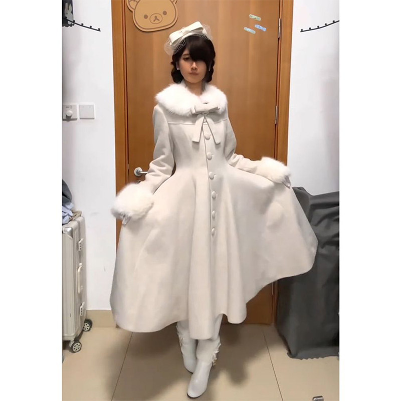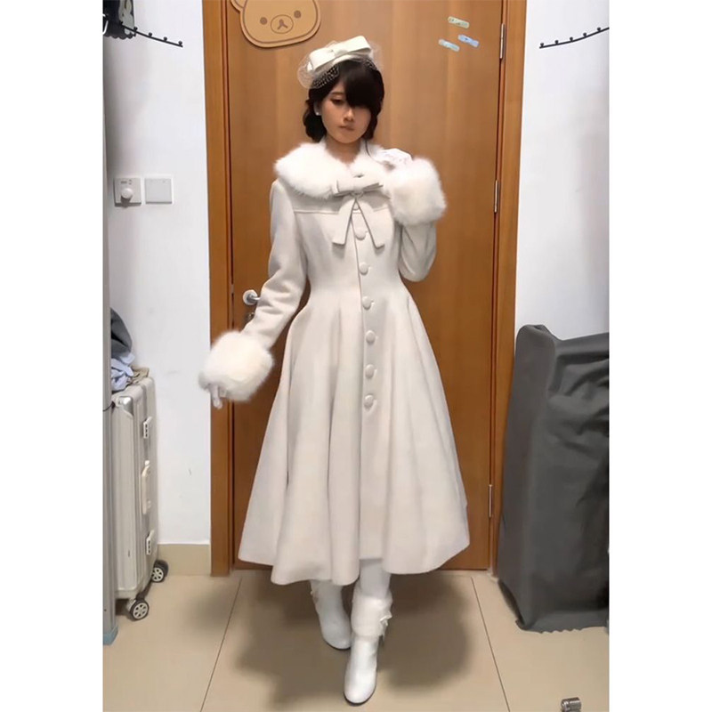 推荐理由:冬季日系Lolita气质大小姐设计感中长款毛呢大衣女收腰气质洛丽塔