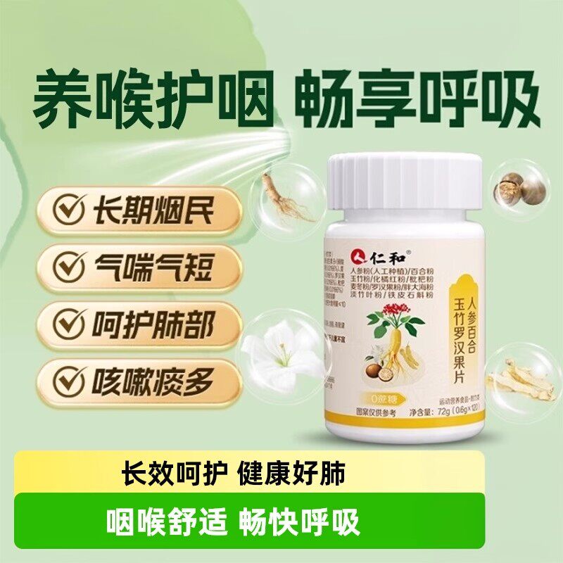 仁和人参百合玉竹罗汉果男女中老年咳嗽咳痰抽烟干咳痛痒戒烟神器