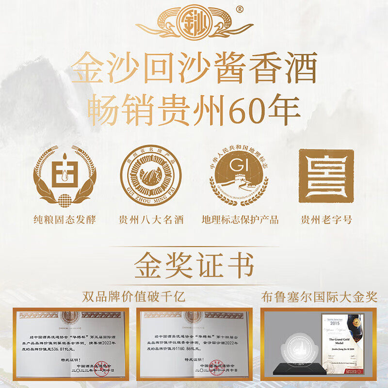 推荐理由:金沙回沙酒1963酱香型白酒纯粮食酱酒53度500ml自饮长辈送礼