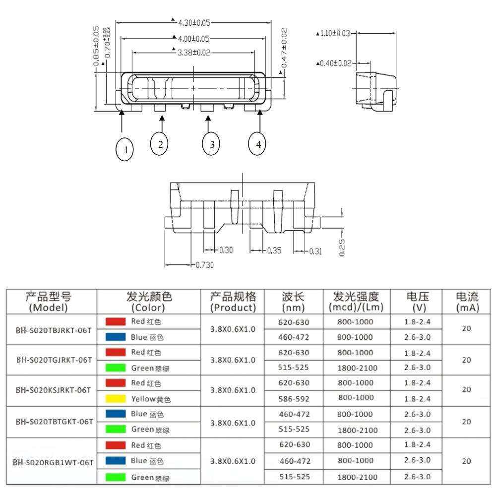 推荐理由:020/3806侧面红色+蓝色双色LED贴片灯珠发光二级管示灯珠超高亮指