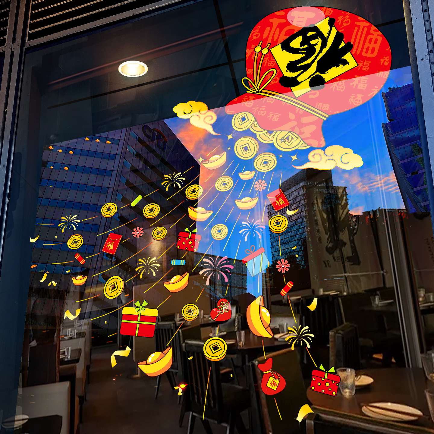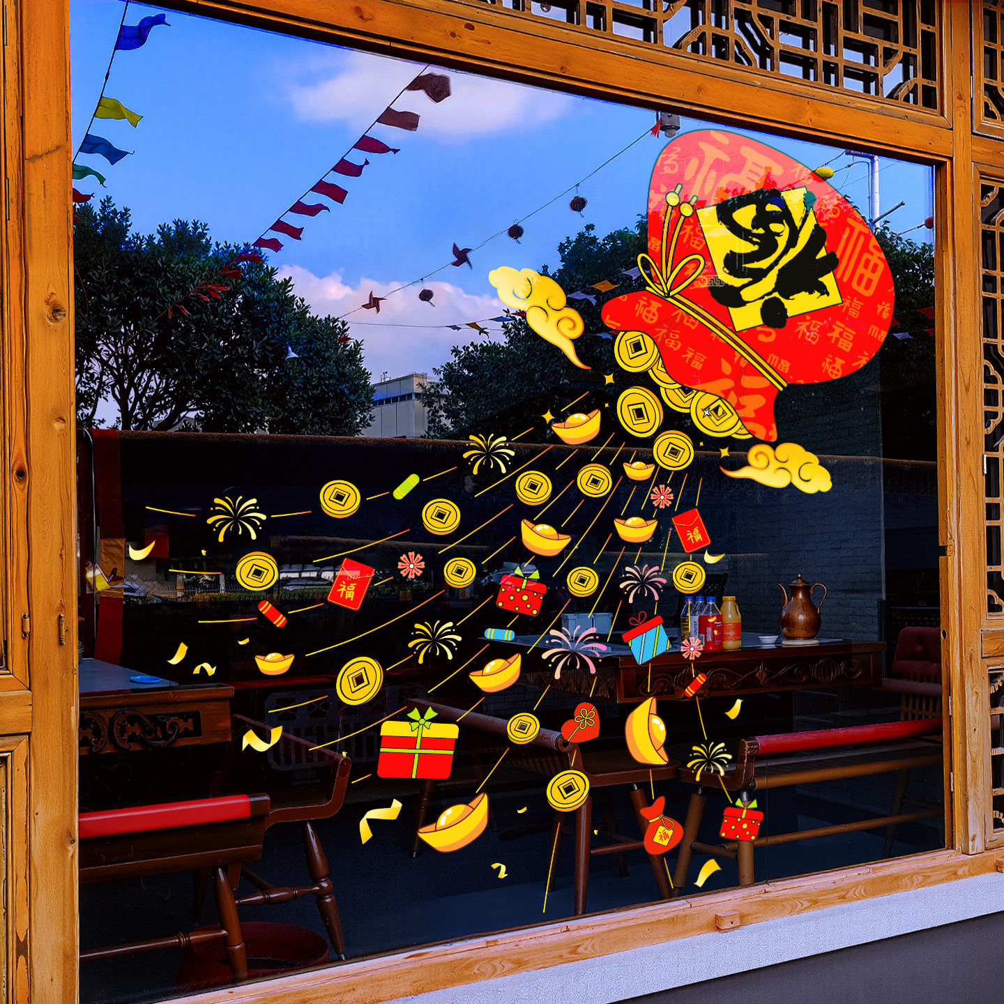 新年装饰福字门贴马年窗花春节过年大门元宝福袋玻璃贴纸静电贴画