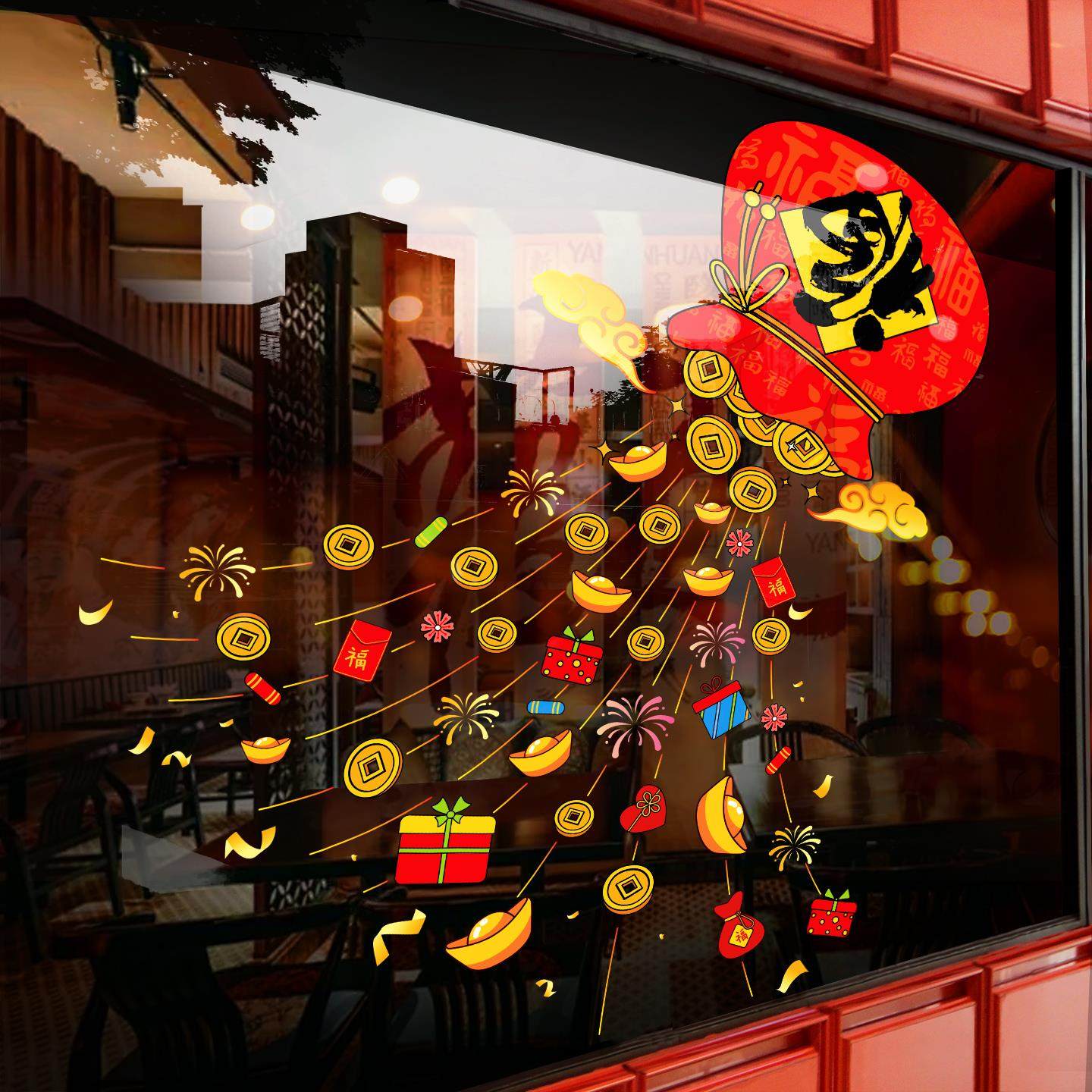 推荐理由:新年装饰福字门贴马年窗花春节过年大门元宝福袋玻璃贴纸静电贴画