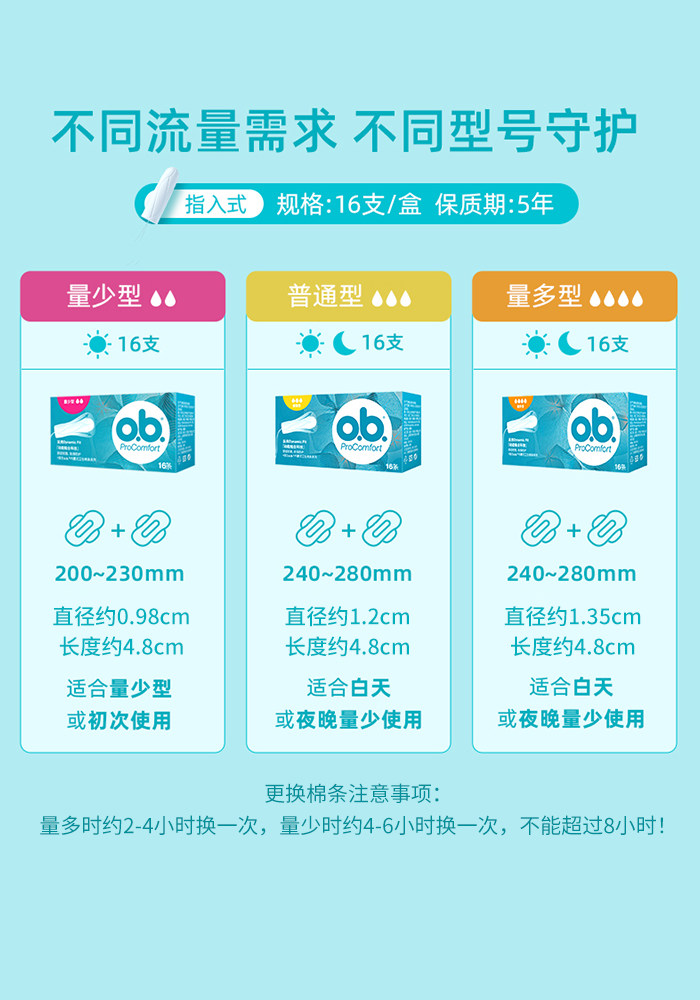 强生ob卫生棉条内置塞入式棉棒卫生巾经期游泳防水防漏姨妈巾女性