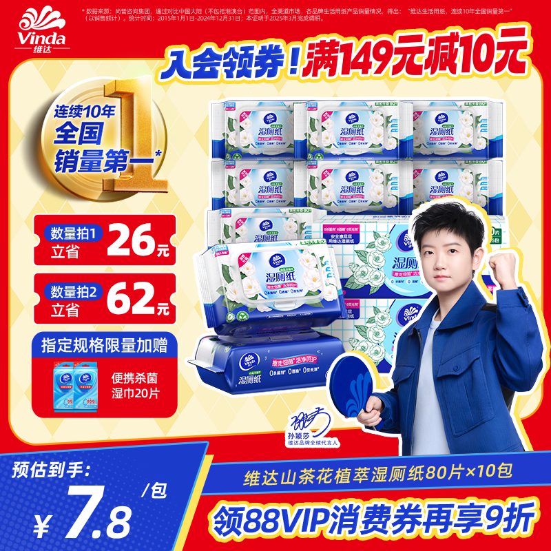 维达山茶花湿厕纸80片家庭实惠装女士专用湿厕巾孕妇专用湿厕纸巾