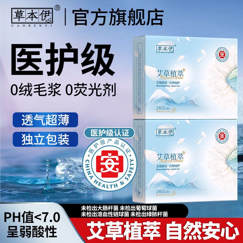 草本伊艾草卫生巾日夜组合轻薄透气棉柔亲肤医护姨妈巾旗舰店正品