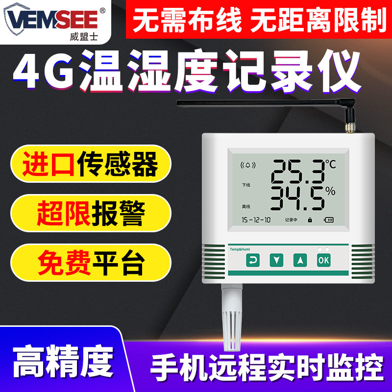 工业级温湿度记录仪4G型无线温湿度传感器冷藏冷链车载温湿度计