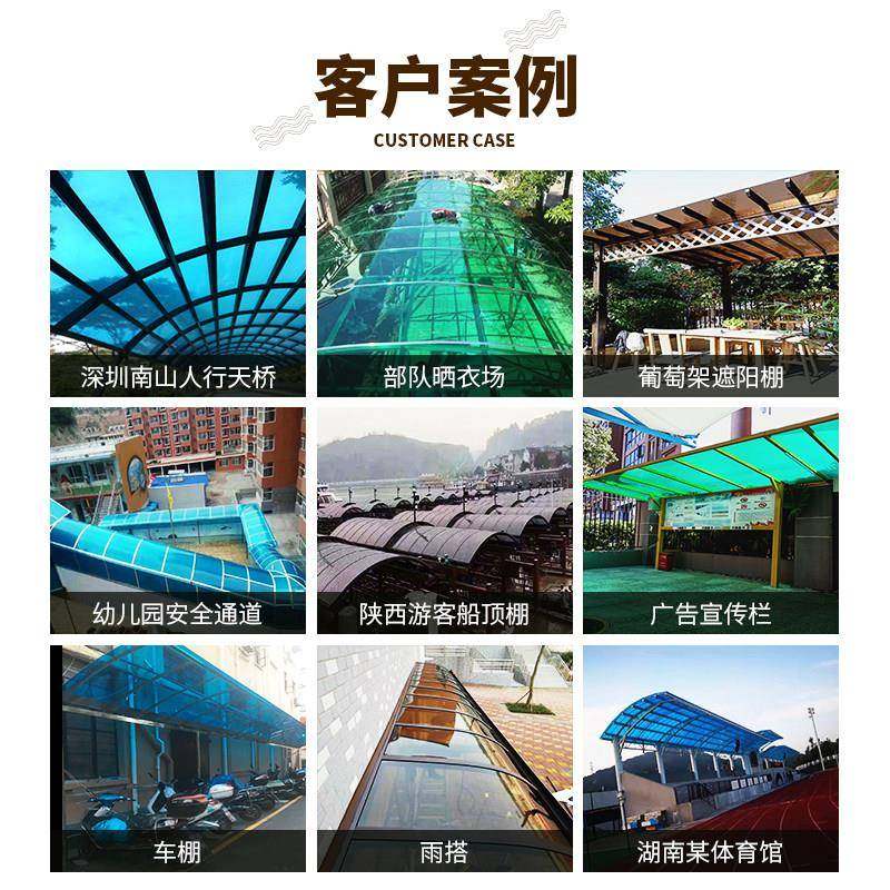 PC实心耐力板阳光房透明车棚塑料板挡雨采光屋顶阳光板遮雨棚定制