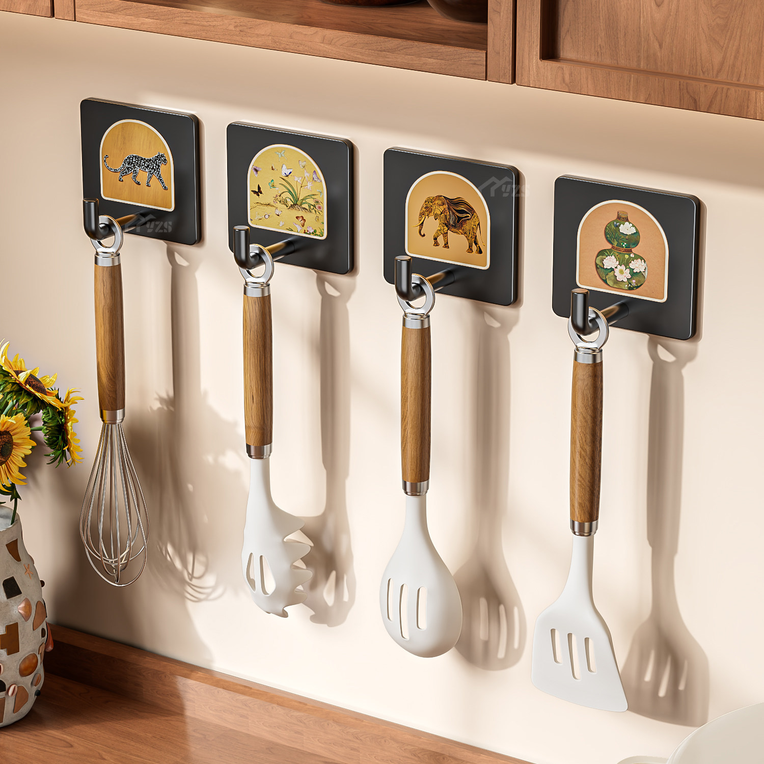 中古风厨房创意可爱挂钩强力承重免打孔入户门后挂钩卫生间挂衣钩