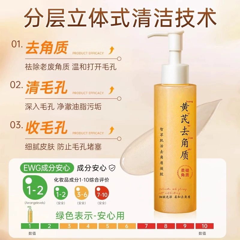 推荐理由:黄芪去角质面部死皮深层清洁毛孔祛黑头磨砂膏啫喱官方旗舰店正品