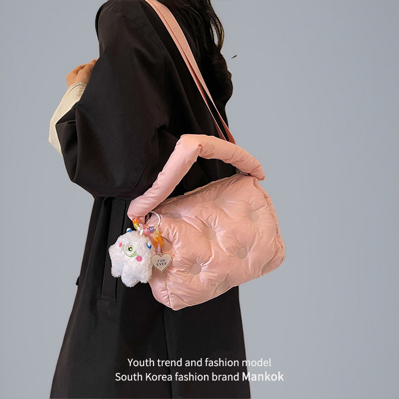 Mankok枕头包包女2025新款云朵斜挎太空棉包通勤羽绒包手提棉服包