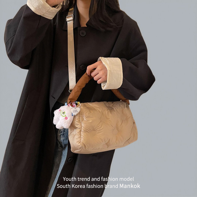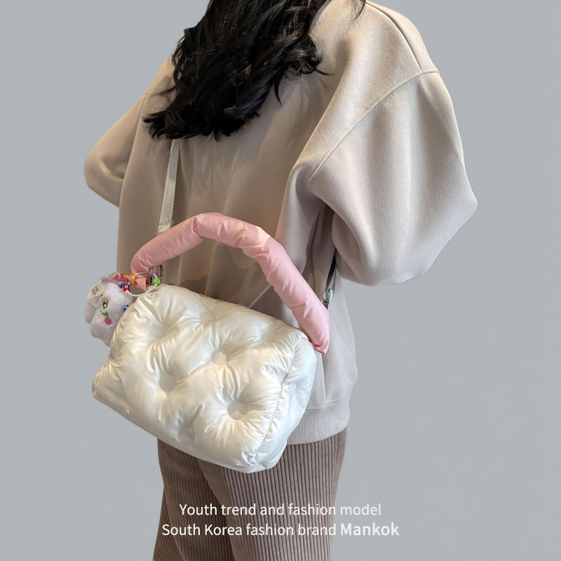 推荐理由:Mankok枕头包包女2025新款云朵斜挎太空棉包通勤羽绒包手提棉服包