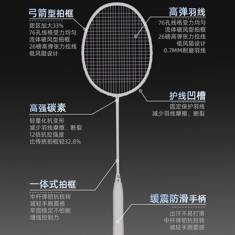 推荐理由:全碳素超轻初学者专业训练耐打单拍均衡之刃