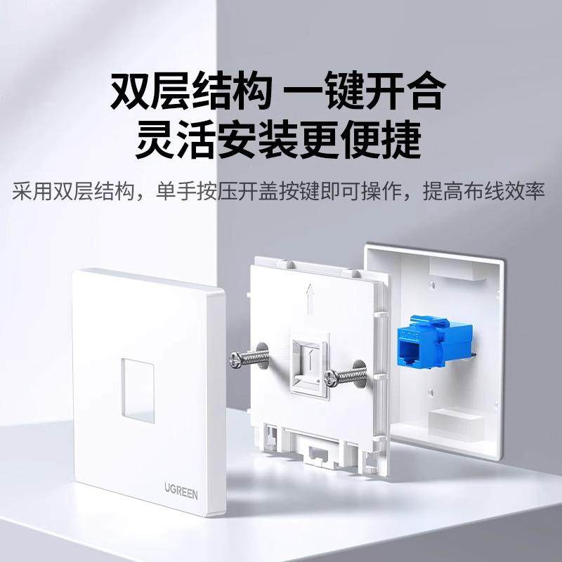 绿联网线面板网络插座86型千兆宽带超五六类信息模块双接口网线盒
