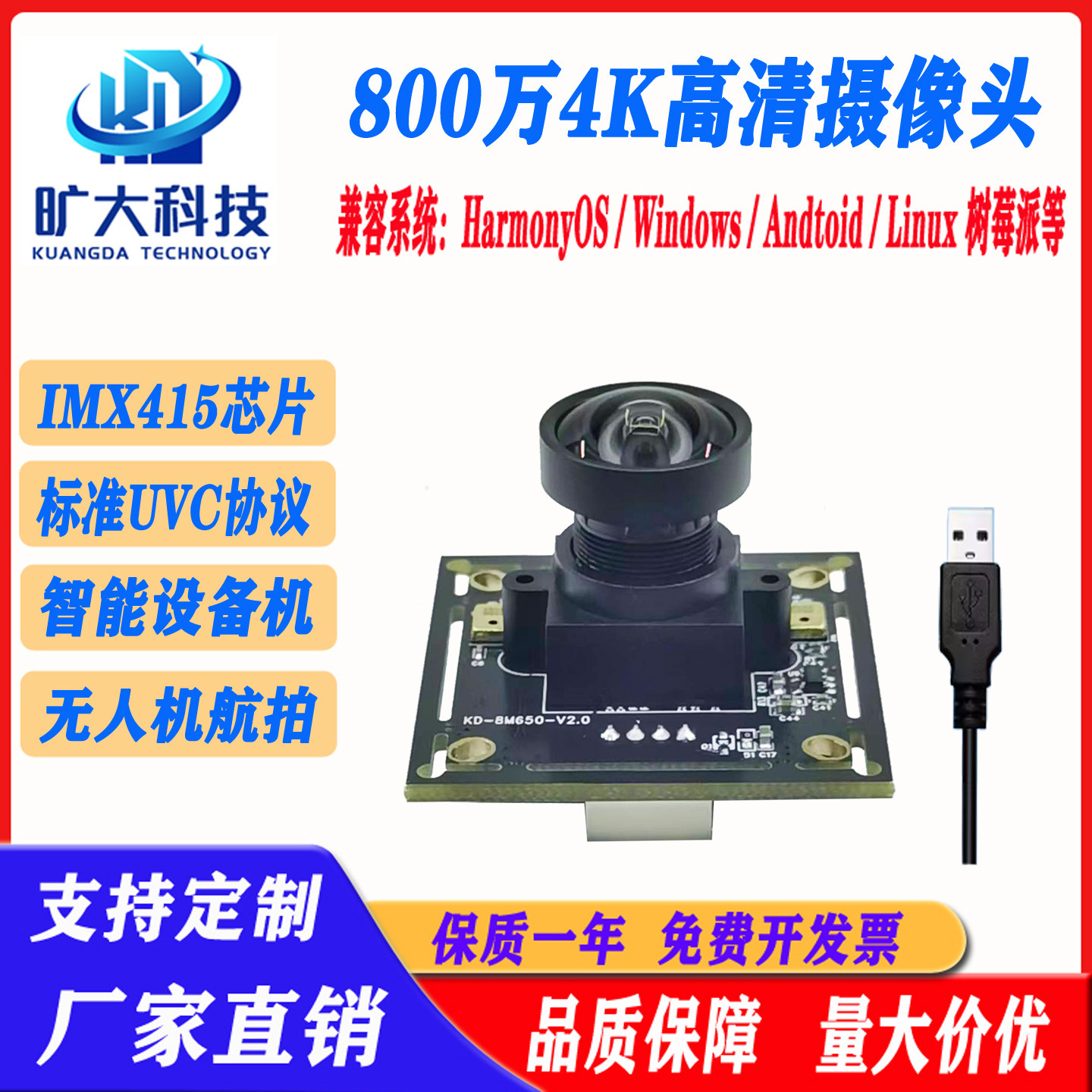 推荐理由:imx415摄像头模组4K高清800万像素usb免驱动工业相机视觉扫描模块