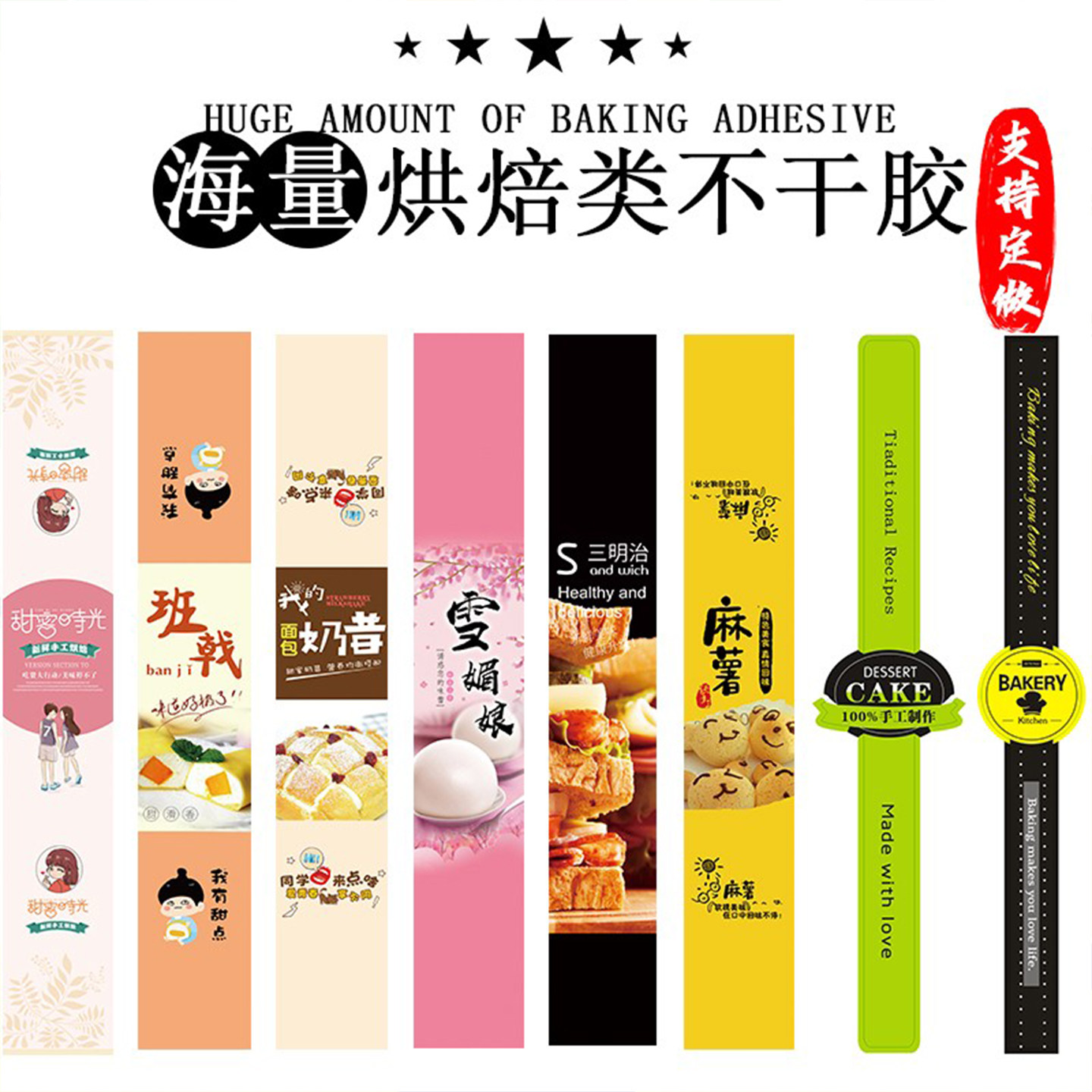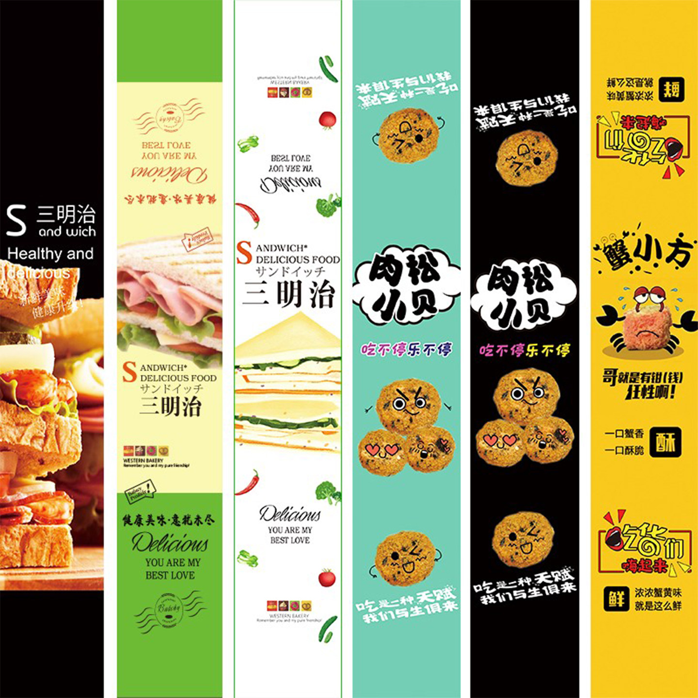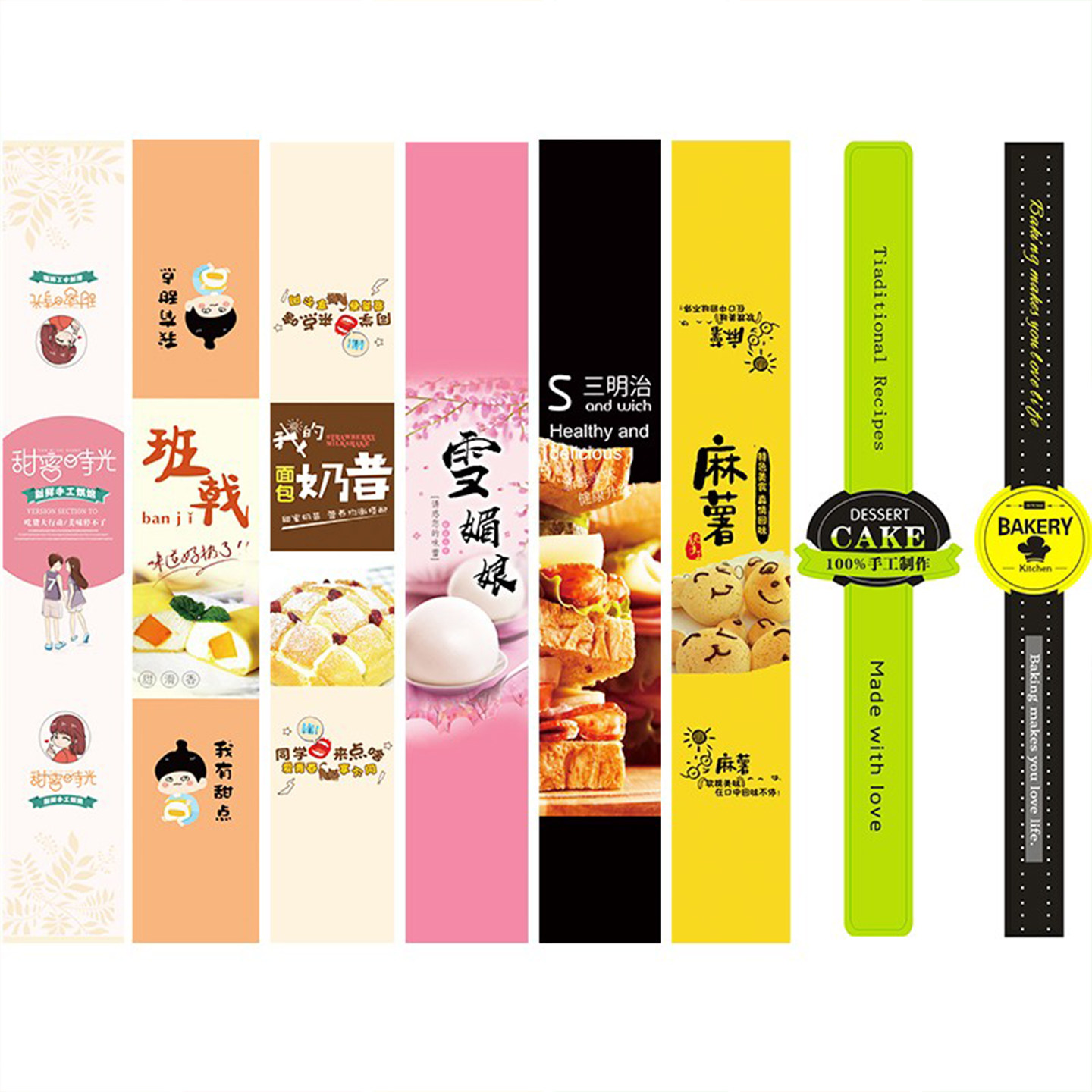 烘焙三明治爆浆芒果蛋黄酥雪媚娘泡芙肉松小贝包装不干胶长条贴纸