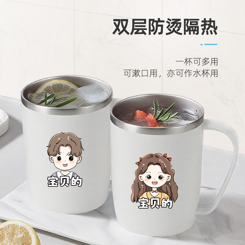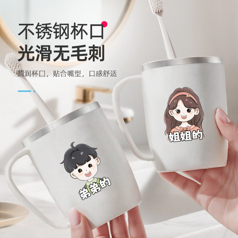 推荐理由:2025新款304不锈钢儿童刷牙漱口杯高颜值一家三口防霉抗菌带手柄
