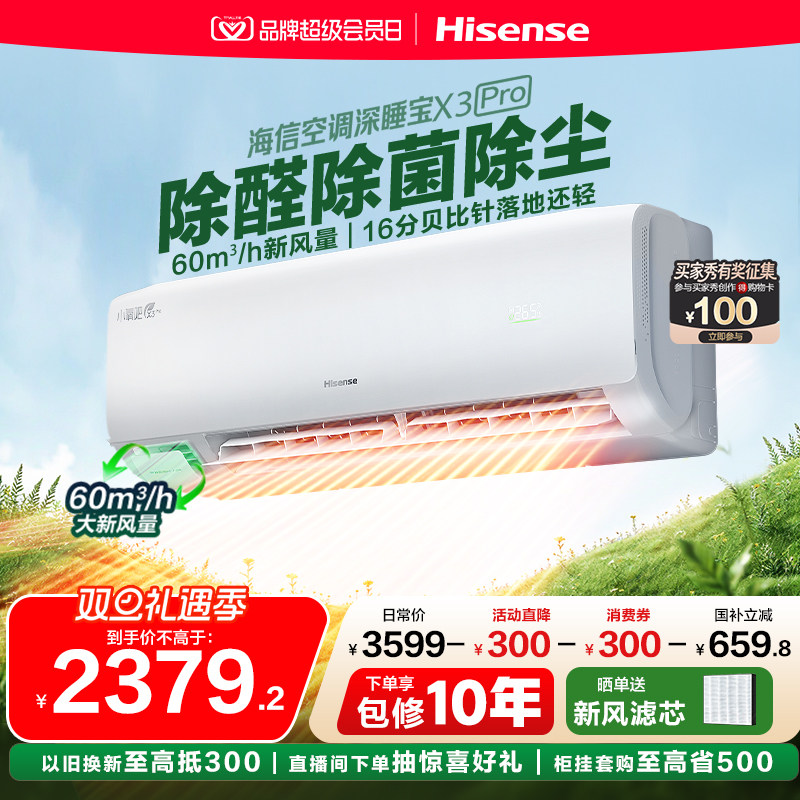 海信空调深睡宝新风大1.5匹1匹家用挂机国补一级能效以旧换新补贴