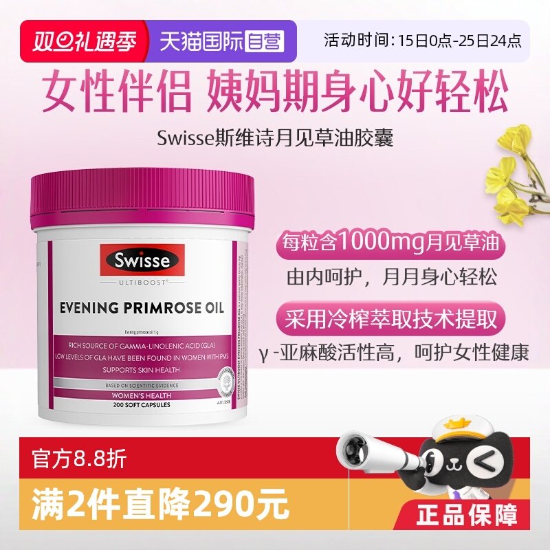 【自营】Swisse斯维诗 月见草油软胶囊女性调理200粒保养卵巢子宫