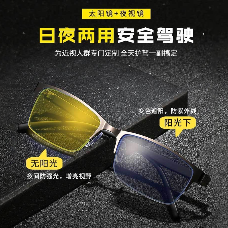 推荐理由:男士半框夜视镜防远光开车驾驶专用防紫外线变色近视眼镜商务款潮