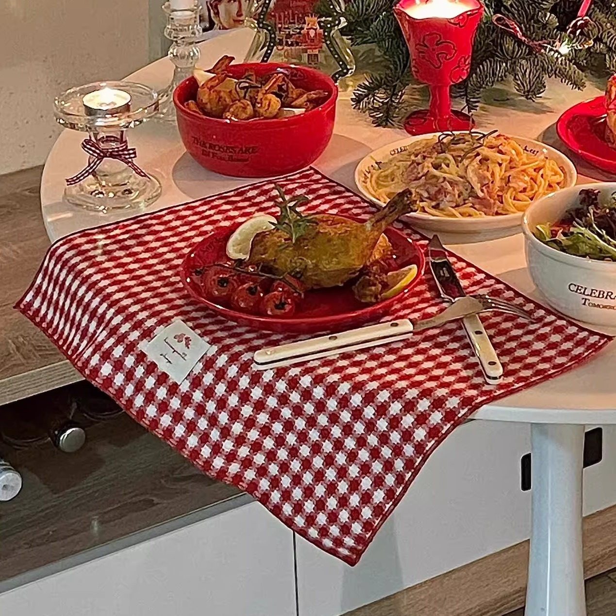 圣诞节桌布氛围感红格子吃饭餐布拍照背景布圣诞装饰品场景布置