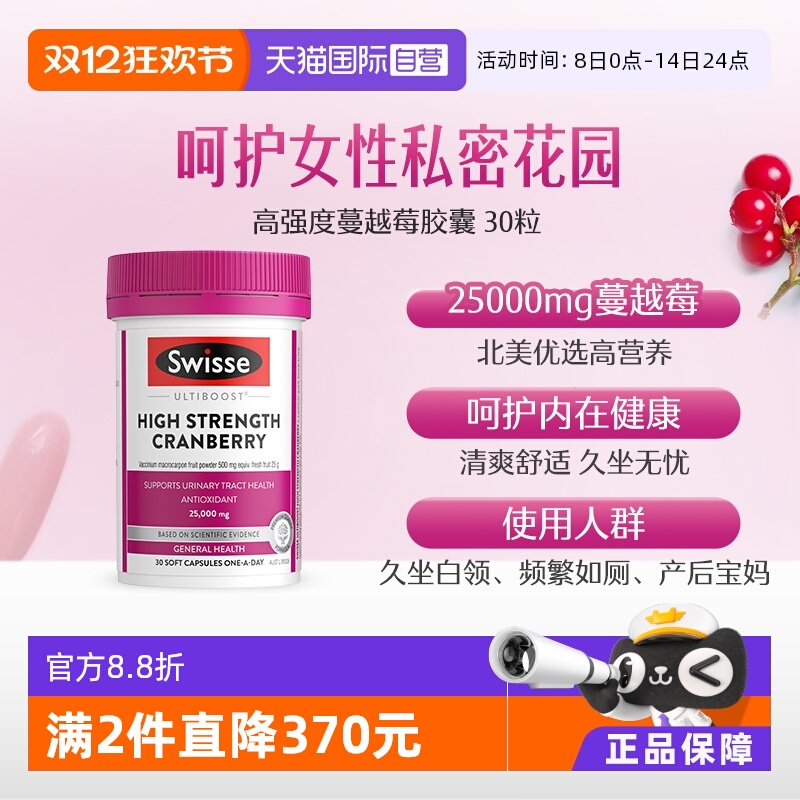 【自营】Swisse斯维诗蔓越莓胶囊高浓度花青素女性保养卵巢益生菌